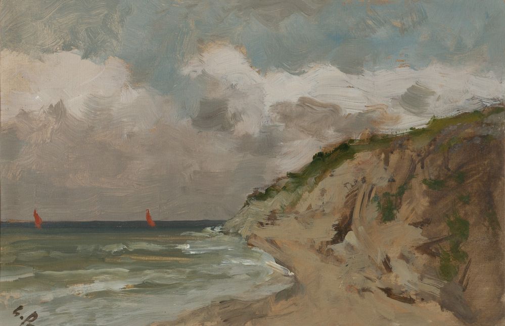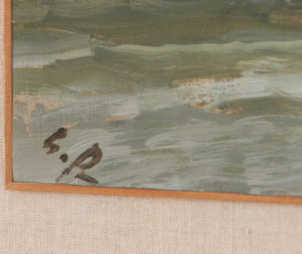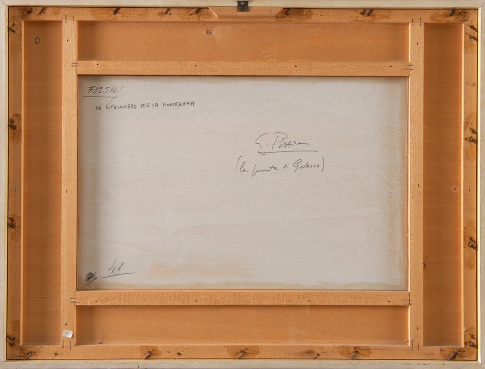 GUGLIELMO PIZZIRANI (Bologna 1886 - 1971) "La fonte a Gabicce". Olio su tavola. Cm 28x43,5. Opera siglata in basso a sinistra GP. Al retro opera firmata e intitolata G. Pizzirani La fonte di Gabicce.