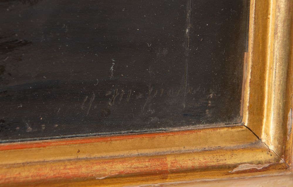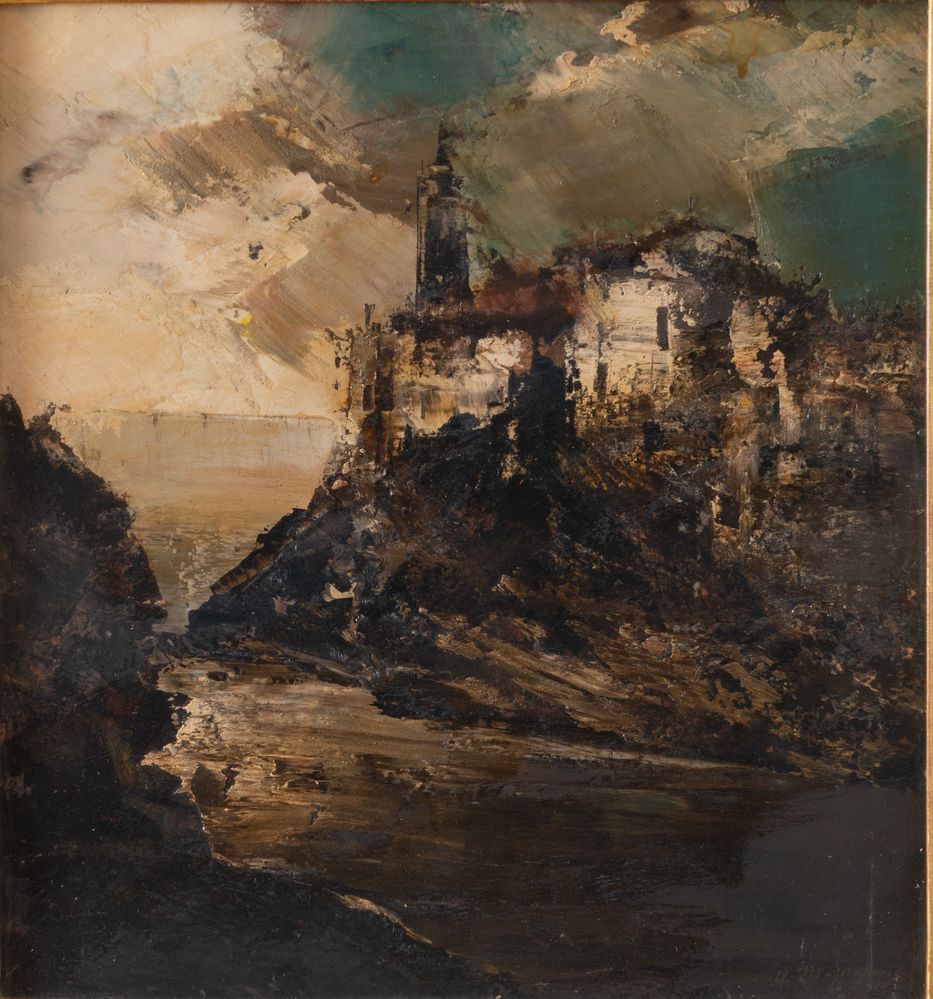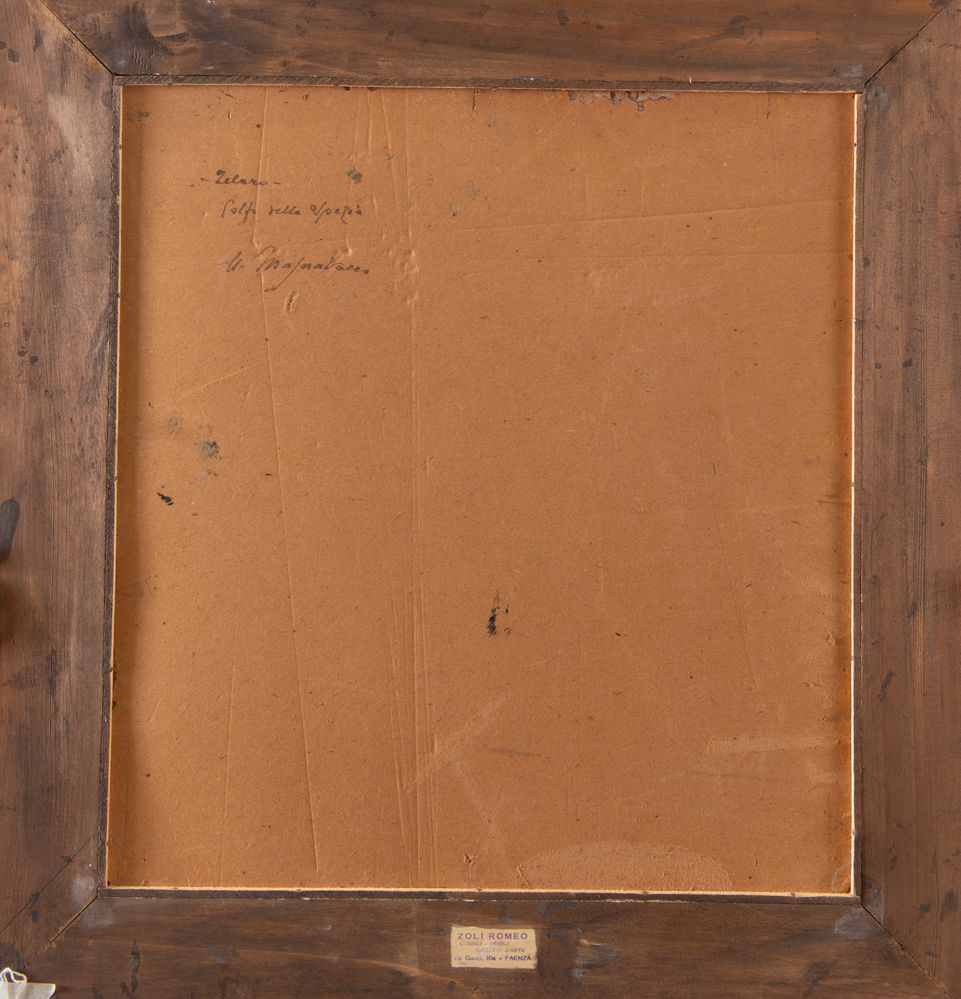 UBALDO MAGNAVACCA (Modena 1885 - 1957) "Telaro, golfo de La Spezia". Olio su tavola. Cm 43,5x40,5. Opera firmata in basso a destra U. Magnavacca. Al retro opera intitolata e firmata Telaro golfo de La spezia, U. Magnavacca.
