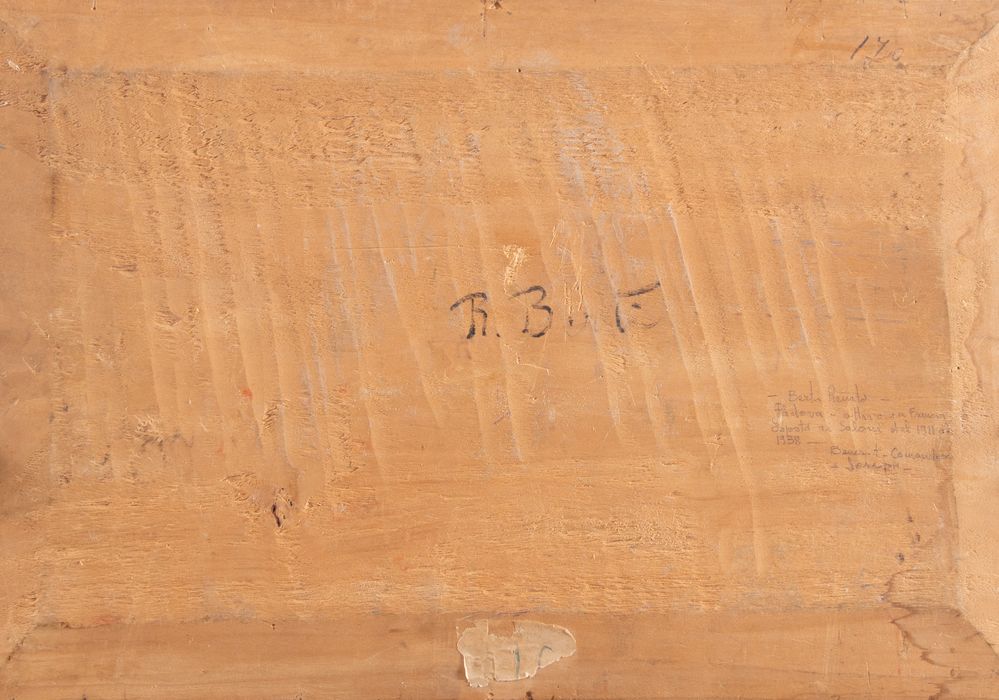 RENATO BERTI (Padova 1884 - Vicenza 1939) "Paesaggio". Olio su tavola. Cm Opera firmata in basso a destra R. Berti. Al retro reca firma.