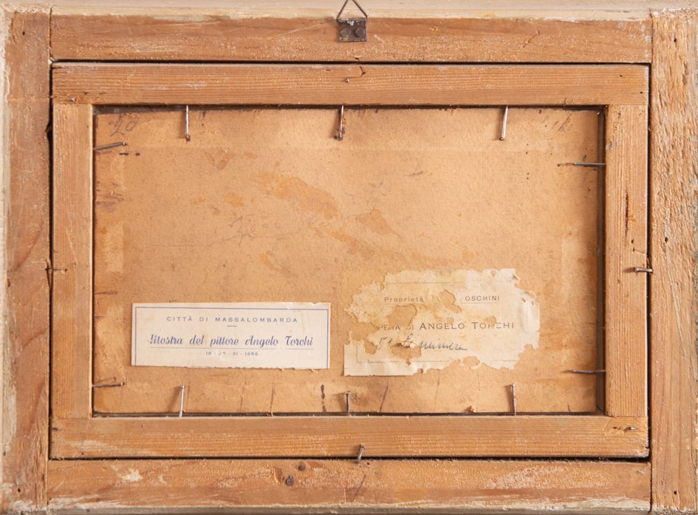 ANGELO TORCHI (Massa Lombarda 1856 - 1915) "Paesaggio". Olio su cartone. Cm...