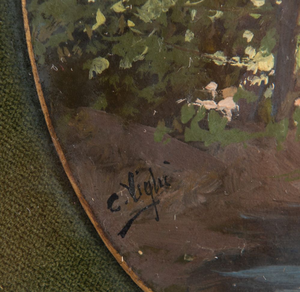CORIOLANO VIGHI (Firenze 1846 - Bologna 1905) "Paesaggio". Olio su tavolozza, Cm 12x9. Opera firmata in basso a sinistra C. Vighi,