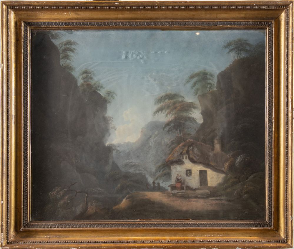 Maestro del XIX secolo "Paesaggio". Tempera su tela. Cm 59x71.