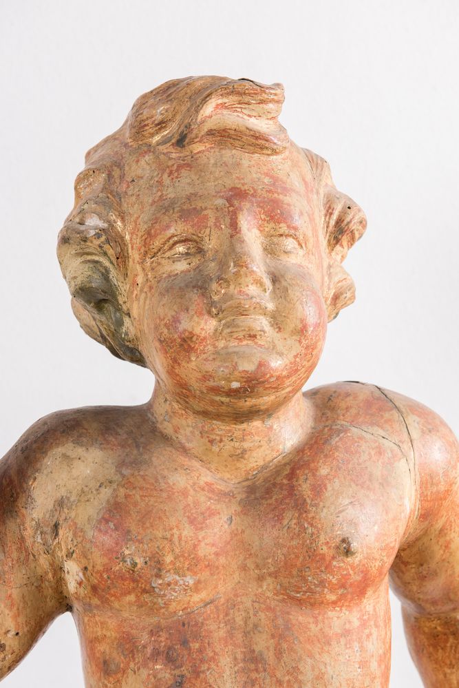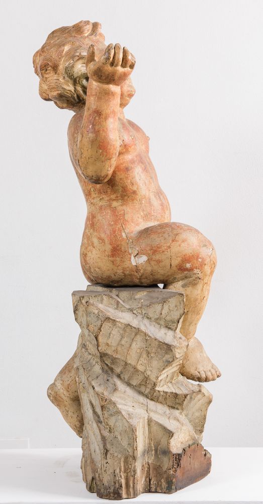 GRANDE PUTTO in legno con tracce di doratura. Roma, fine del XVII secolo -...