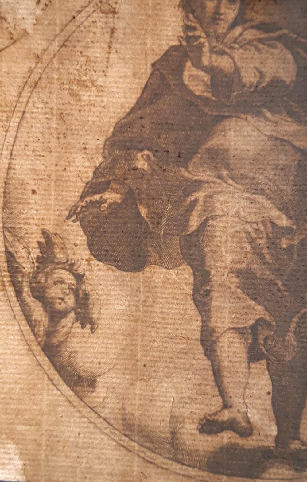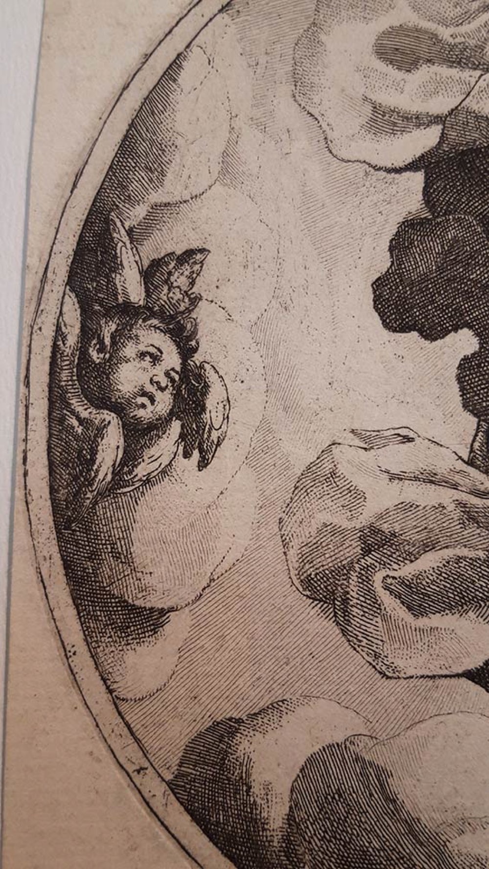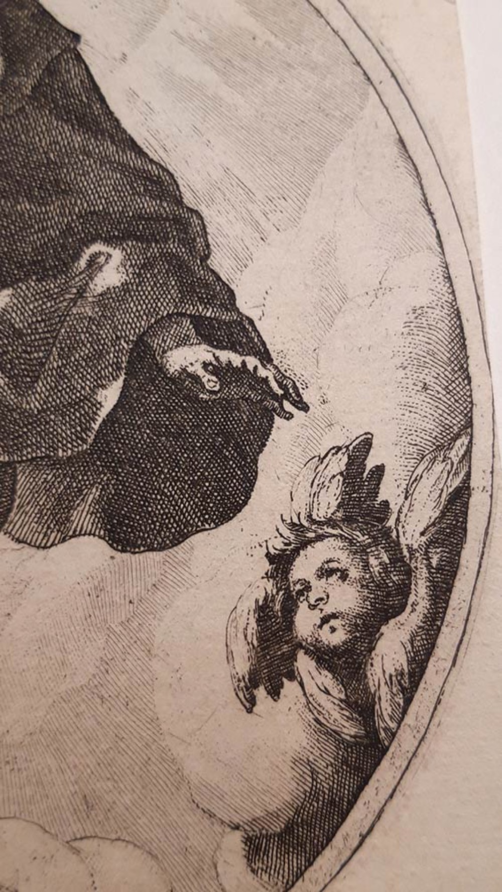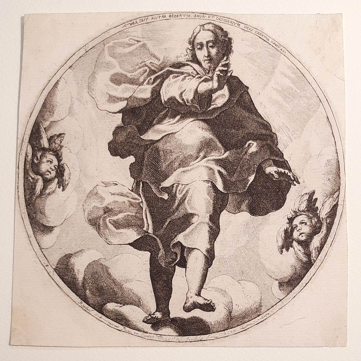 Stato unico. All’interno della doppia linea di contorno in basso la firma del Maestro fiorentino con la data 1613, in alto un’ iscrizione in latino. Da un soggetto del pittore urbinate Federico Barocci.