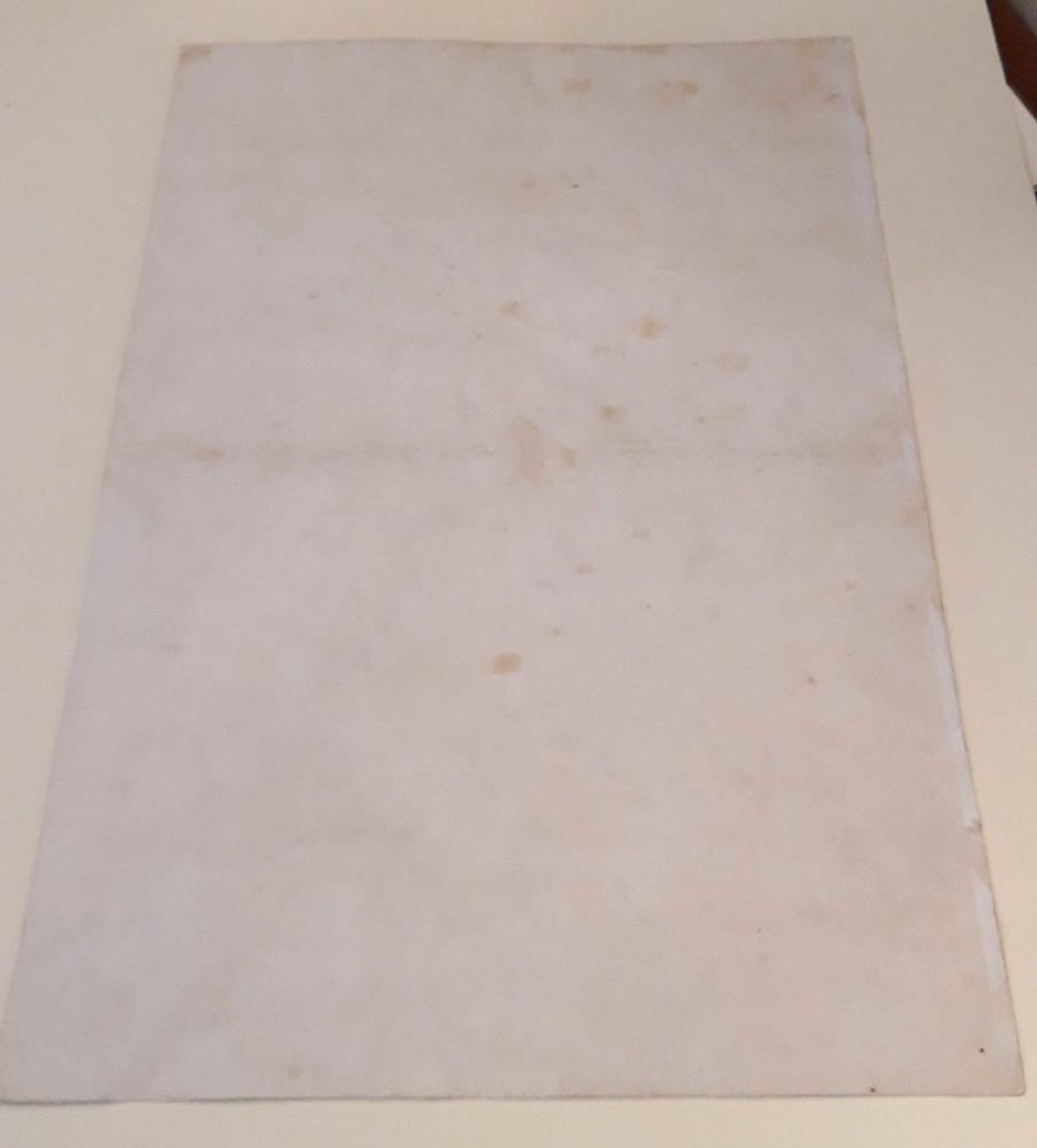 Discreta conservazione dell’ incisione completa all’ impronta del rame con fioriture sparse e qualche piccola abrasione presente negli angoli. Piega centrale, usuale per fogli di queste dimensioni, visibile per lo più al verso.