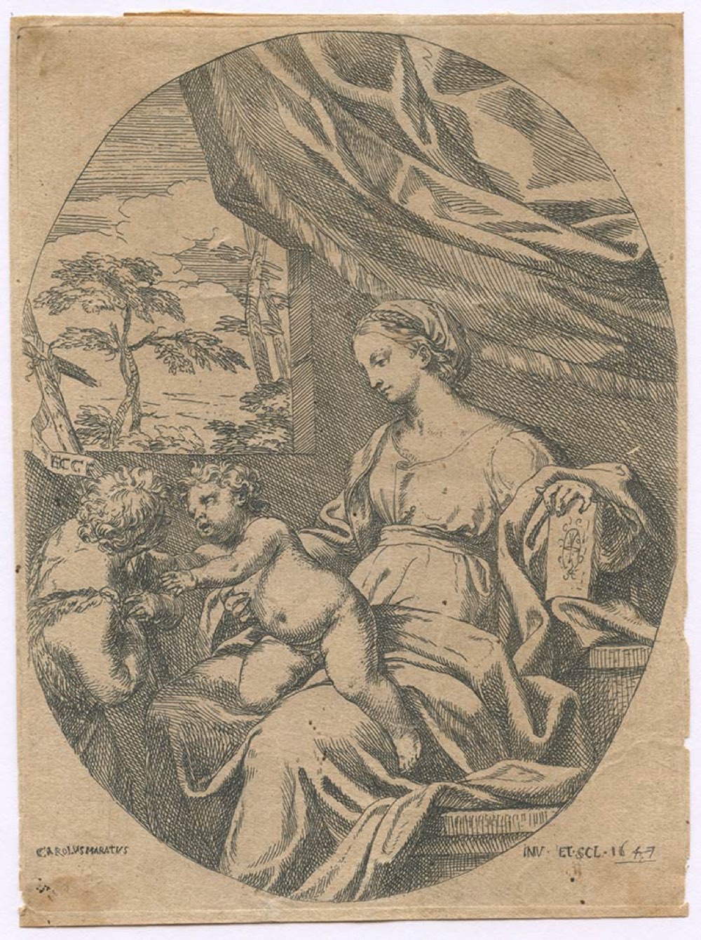 Carlo Maratta (1625-1713): MADONNA CON BAMBINO E SAN GIOVANNI, C. 1647
