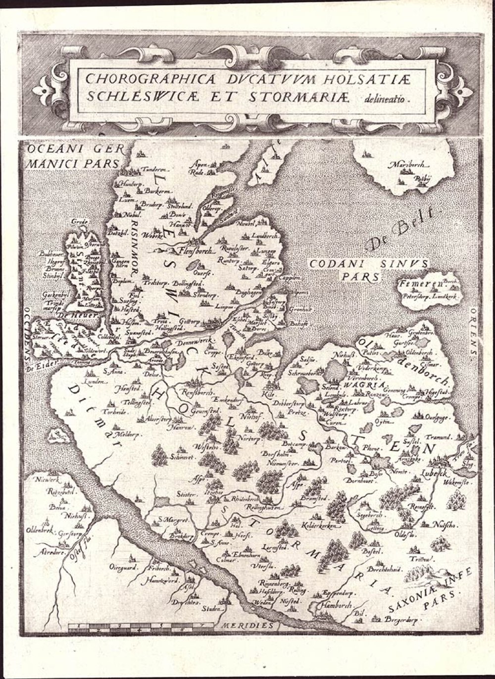 Abraham Ortelius (1527-1598): CHOROGRAPHICA DUCATUUM HOLSATIAE SCHLESWICAE ET STORMARIAE, 1593