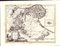 Bella carta dell’Europa con grande cartiglio animato in alto a sinistra, composto da elementi legati alle arti ed alla guerra, sormontati da simboli cristiani rivolti al cielo di Dio.