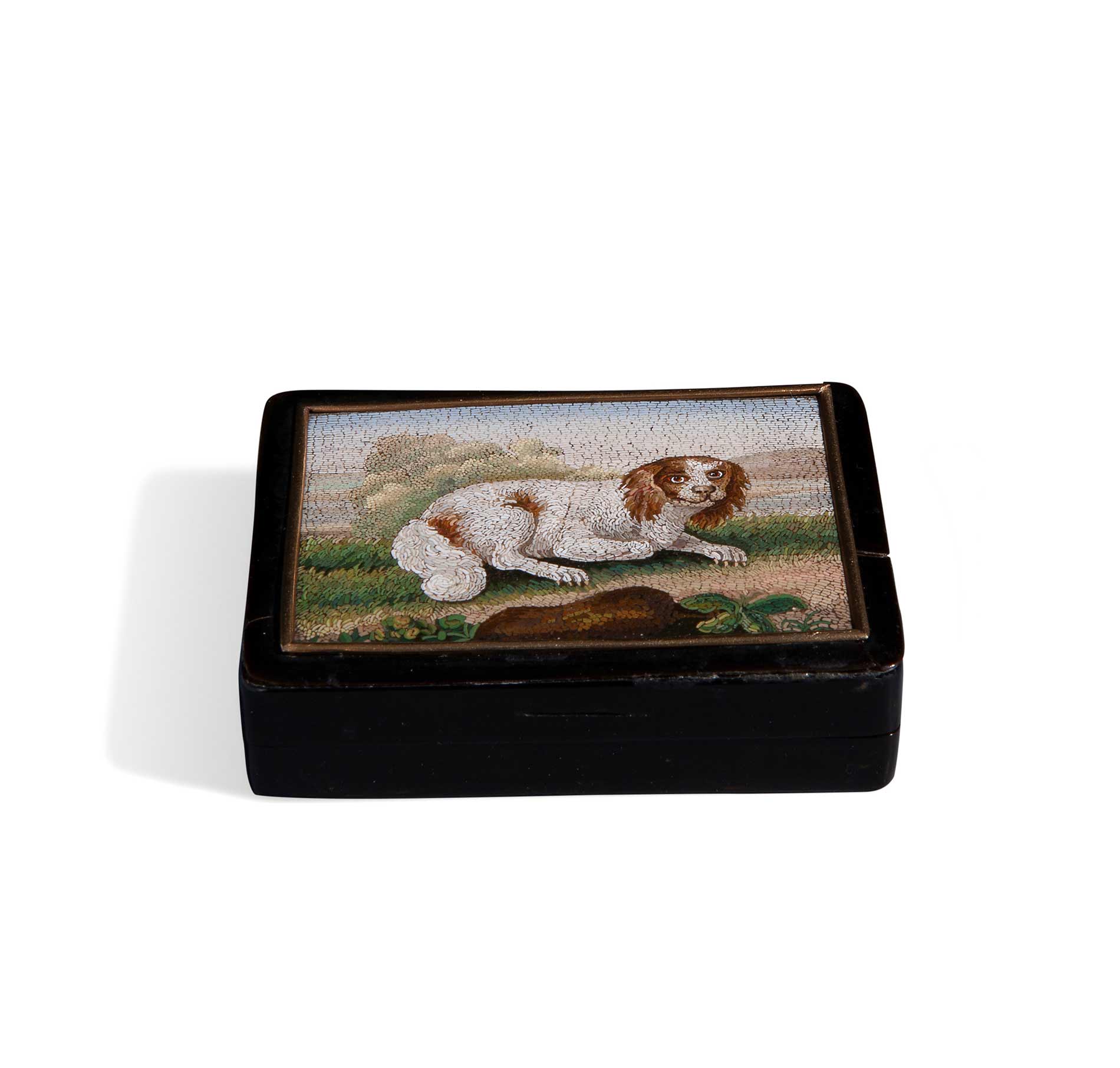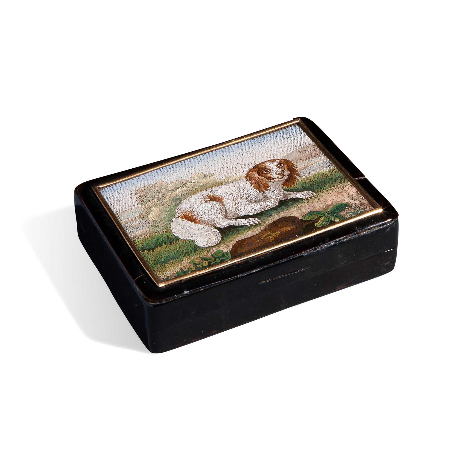 Scatola rettangolare in tartaruga, oro e micromosaico, XVIII secolo
