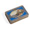 Tabacchiera rettangolare in oro e smalti, prima metà XIX secolo Manifattura svizzera - o di Hanau - in oro 18 kti e smalti azzurri, centrata da miniatura raffigurante paesaggio fluviale. Peso complessivo gr. 123,3 Larghezza cm. 9,1