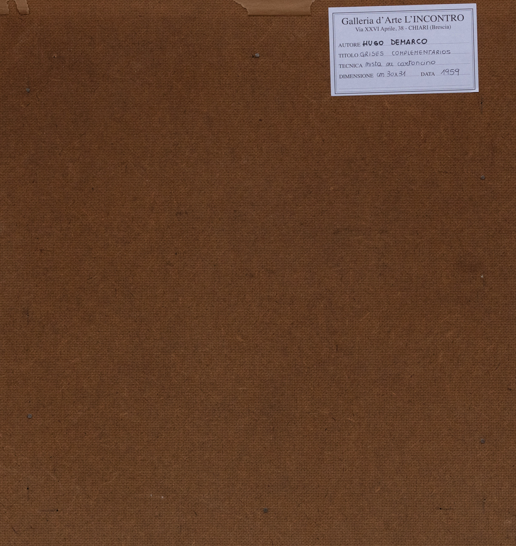 Etichetta al retro Galleria D'Arte L'Incontro, Chiari