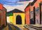 Giovanni Alicò (Catania 1906-Milano 1971) - Strada di paese con case (Aci Sant'Antonio) ed Etna in prospettiva., 1958