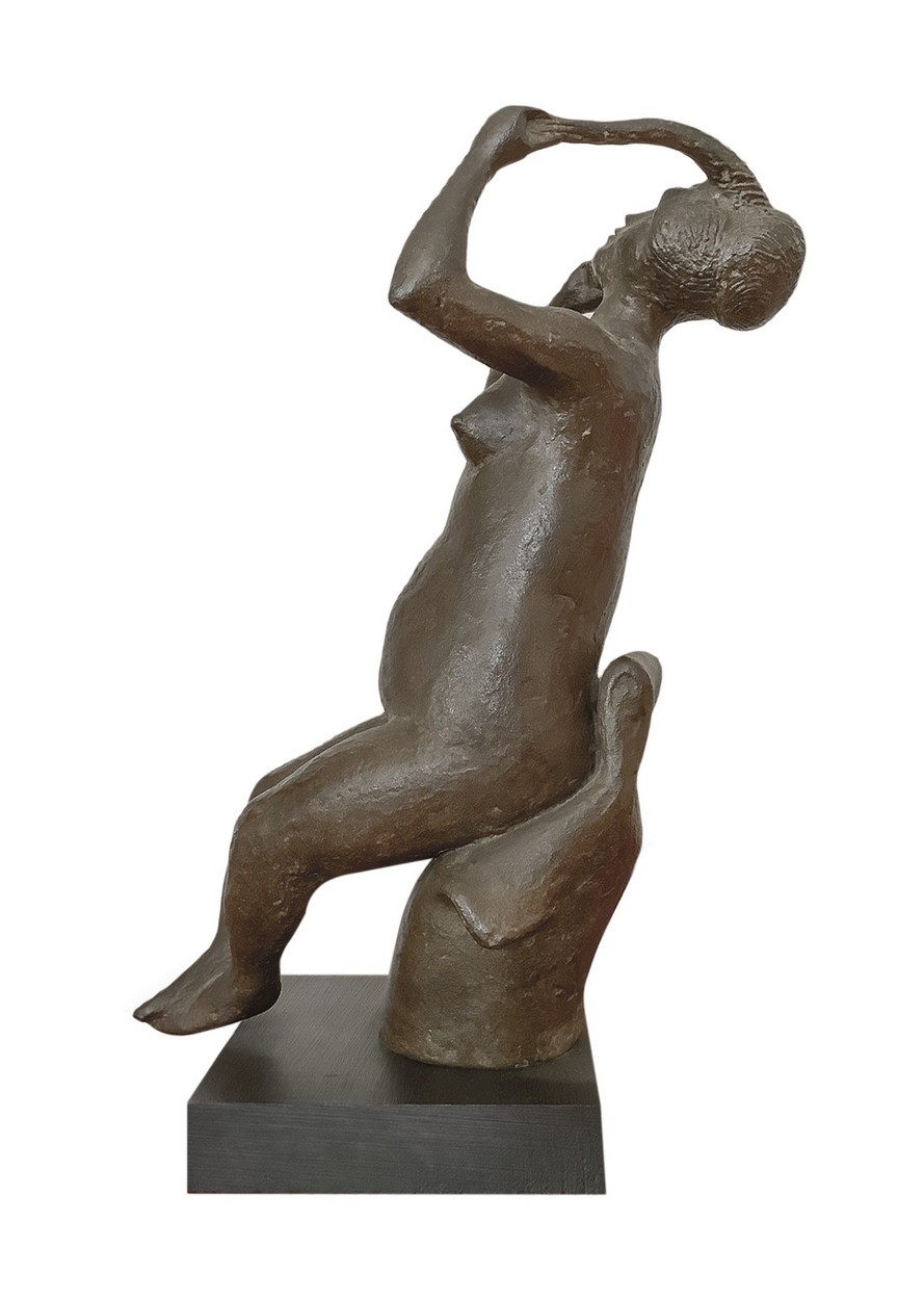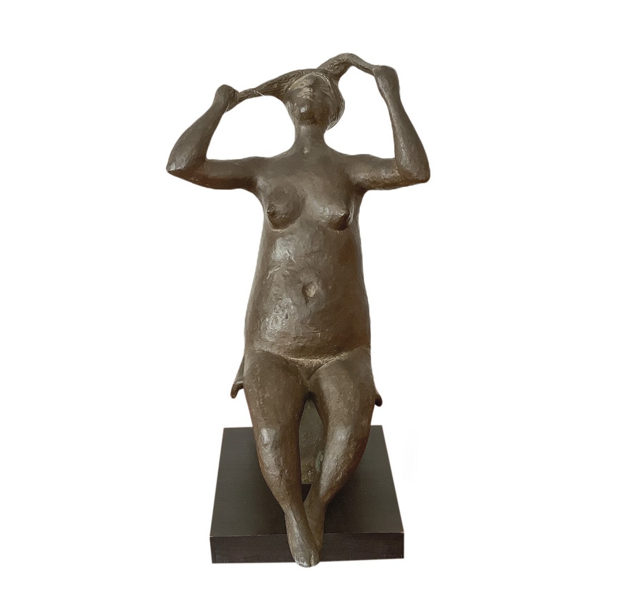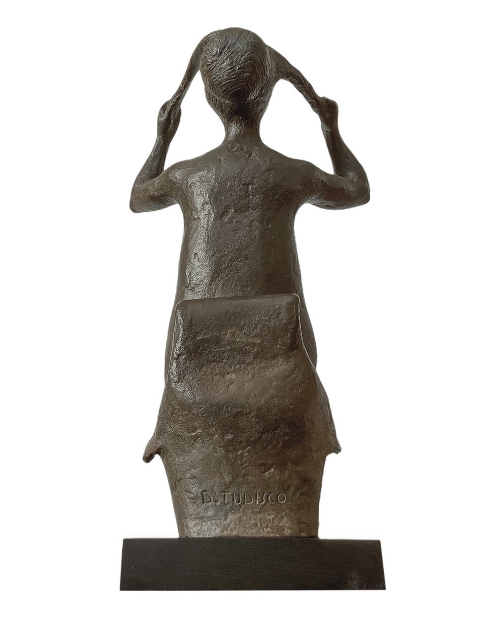 Domenico Tudisco (Catania 1919) - Donna seduta in bronzo patinato bruno