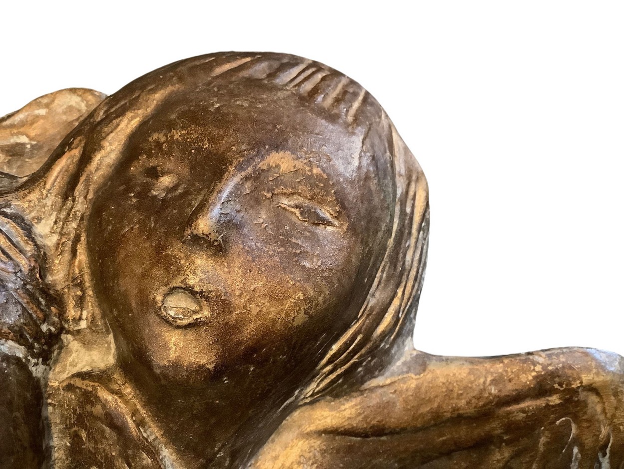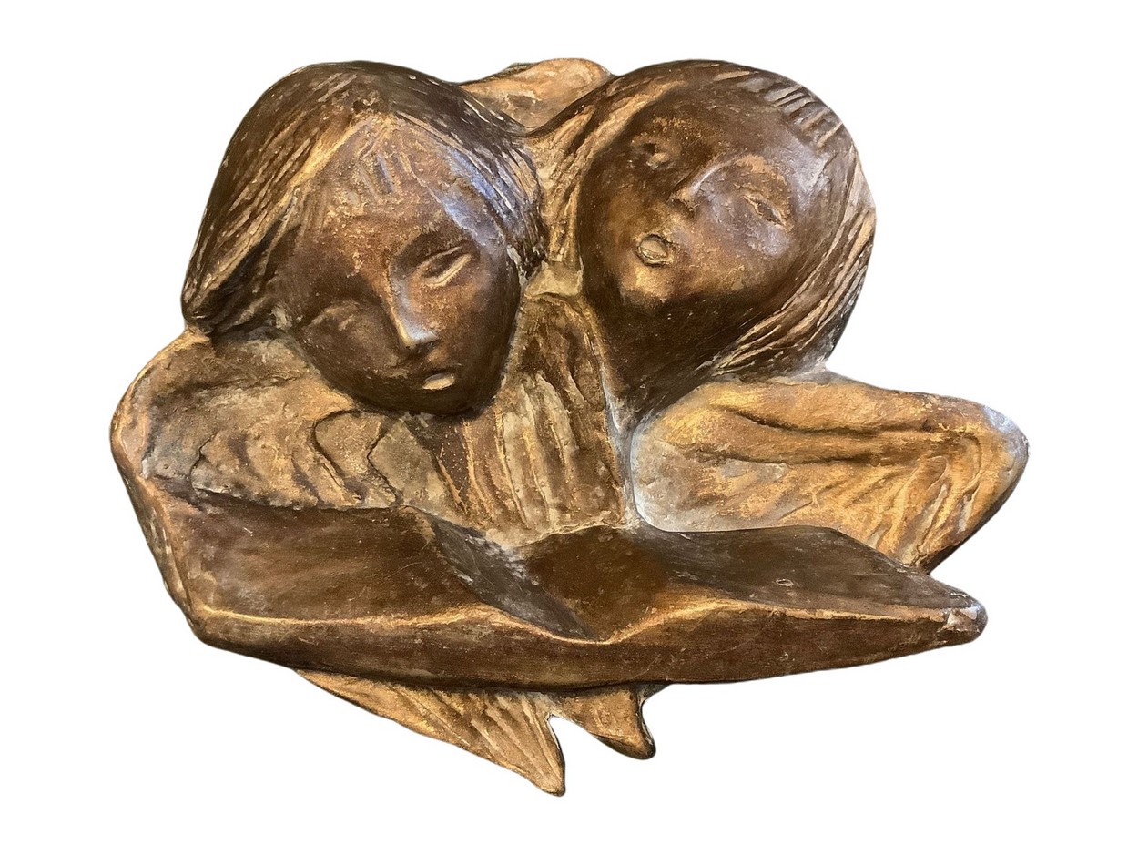 Fantecchi - Placca in terracotta finitura bronzo raffigurante cherubini stilizzati, 40s
