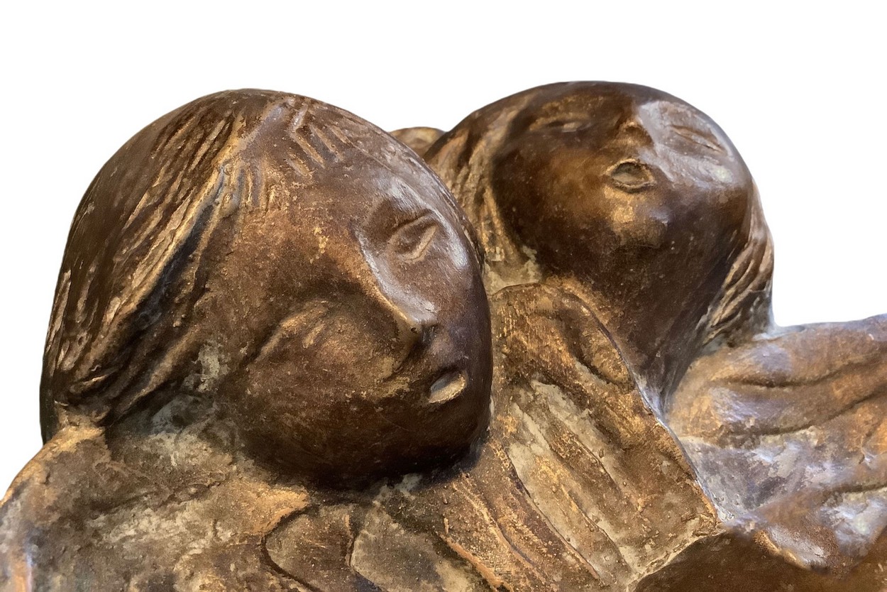 Fantecchi - Placca in terracotta finitura bronzo raffigurante cherubini stilizzati, 40s 18x20 cm marchio della manifattura incusso sul retro.