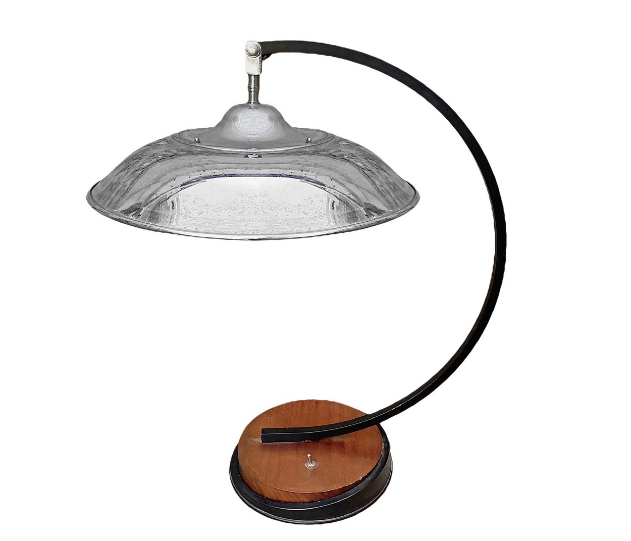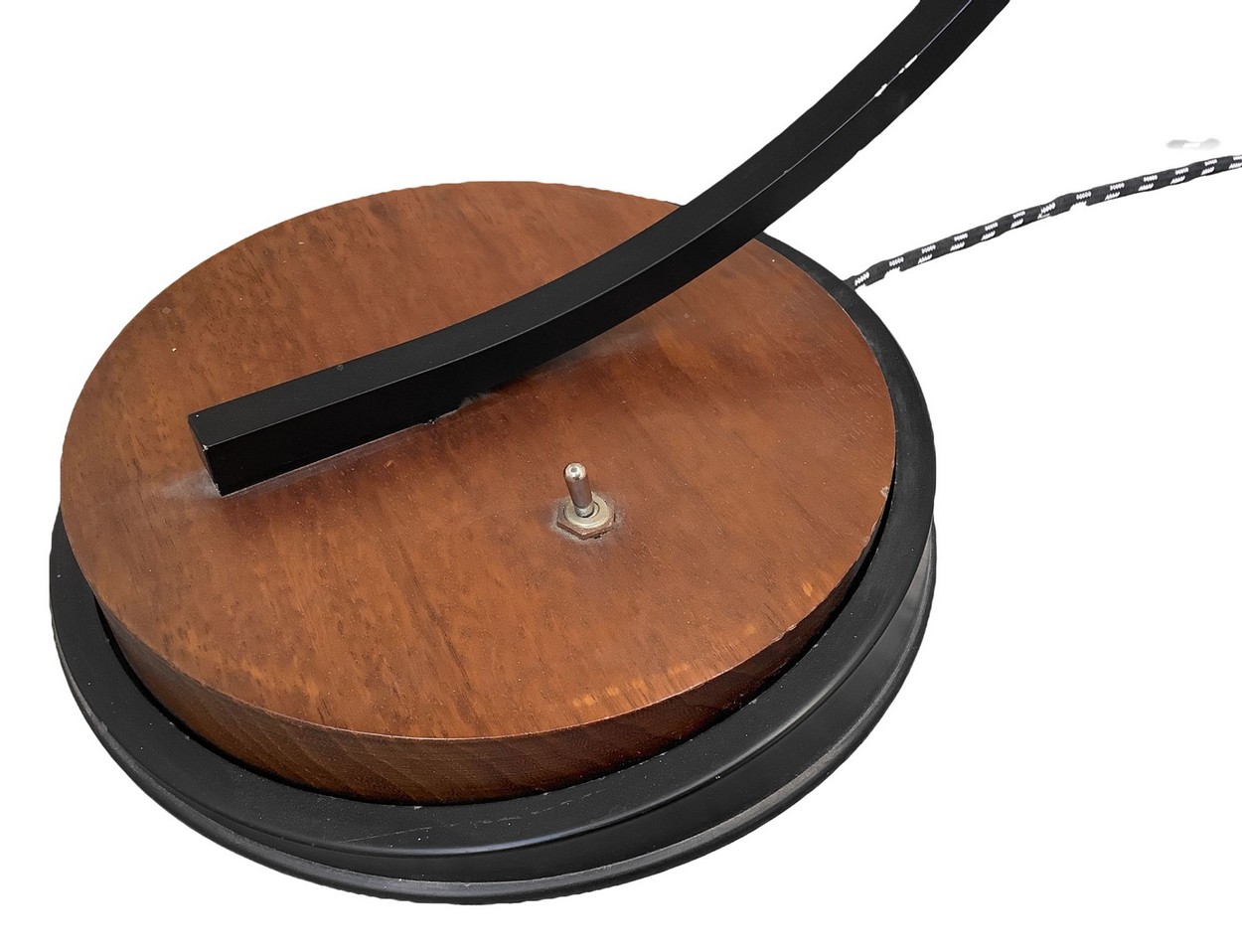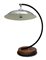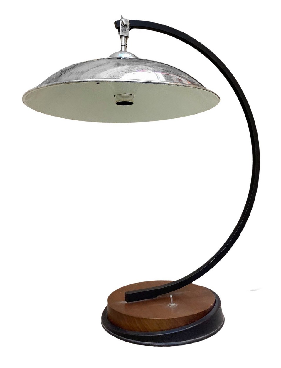 Lampada da tavolo struttura in metallo laccato nero, 1980s 70x38 cm diffusore in metallo cromato laccato bianco, base in legno. Produzione tedesca. Tracce di ossido.