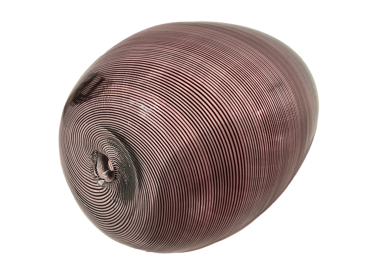 Venini - Disegno Paolo Venini, Uovo in vetro trasparente con decoro a mezza filigrana nei toni dell'amaranto, firmao a punta di diamante.