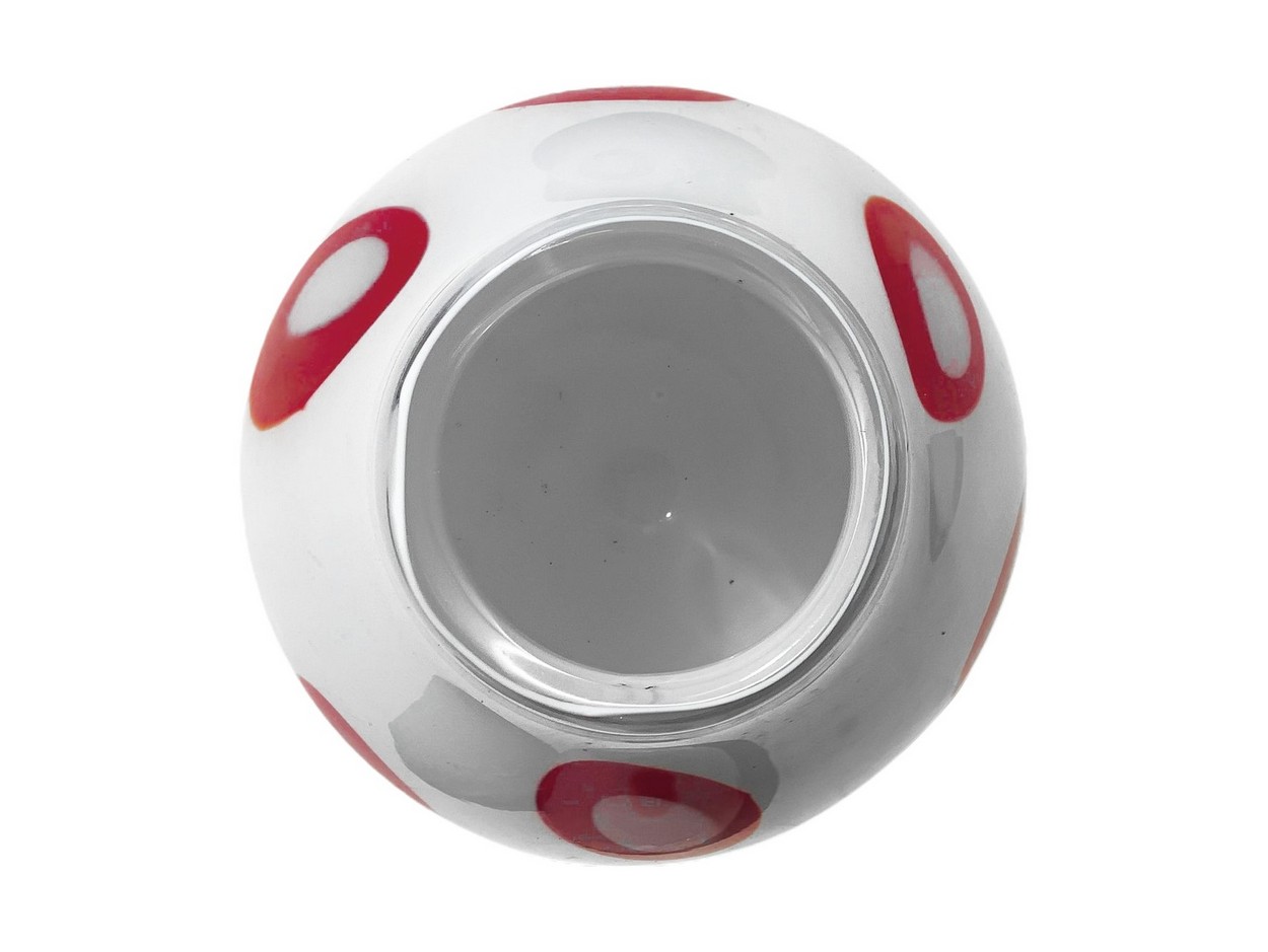 Vaso in vetro di Murano H 23 cm Colore bianco lattimo con decorazioni in rosso. Colore bianco lattimo con decorazioni in rosso.