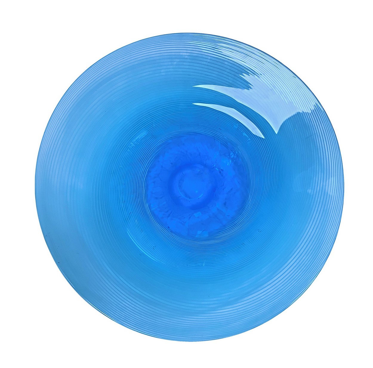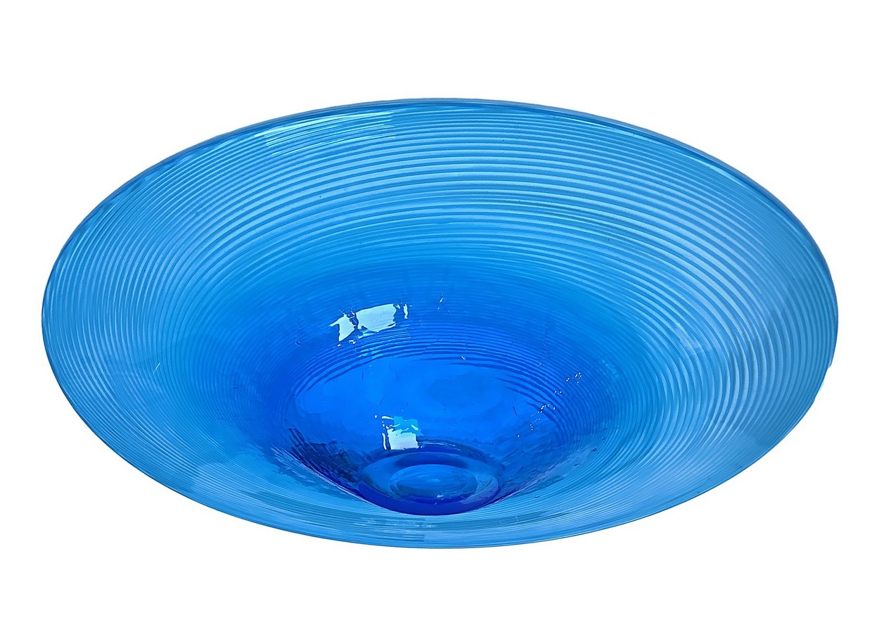 Veart (Venezia) - Importante centrotavola in vetro pesante 42 cm, H 5 cm Nei toni dell’azzurro riportante mezza filigrana lungo la tesa diametroNei toni dell’azzurro riportante mezza filigrana lungo la tesa diametro