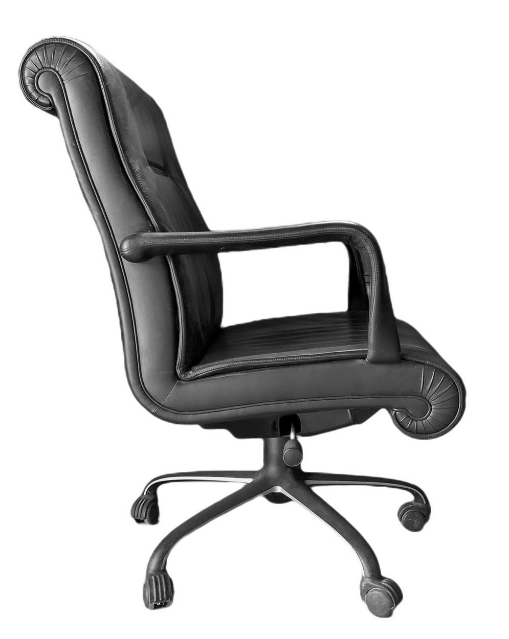 Design Centre per Poltrona Frau - Coppia poltrone modello Forum, disegno Design Centre, 90's H cm 95, cm 64x68 Struttura del piede in alluminio a cinque razze, rivestimento in pelle color nero.Struttura del piede in alluminio a cinque razze, rivestimento in pelle color nero.