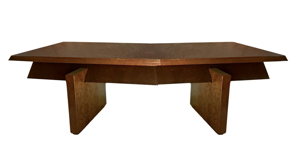 Saporiti (1950) - Scrivania dirigenziale, disegno Giovanni Offredi, 90's Cm 74x250x100 struttura in legno rivestita in radica di olmo acrilicata nei toni del marrone chiarostruttura in legno rivestita in radica di olmo acrilicata nei toni del marrone chiaro