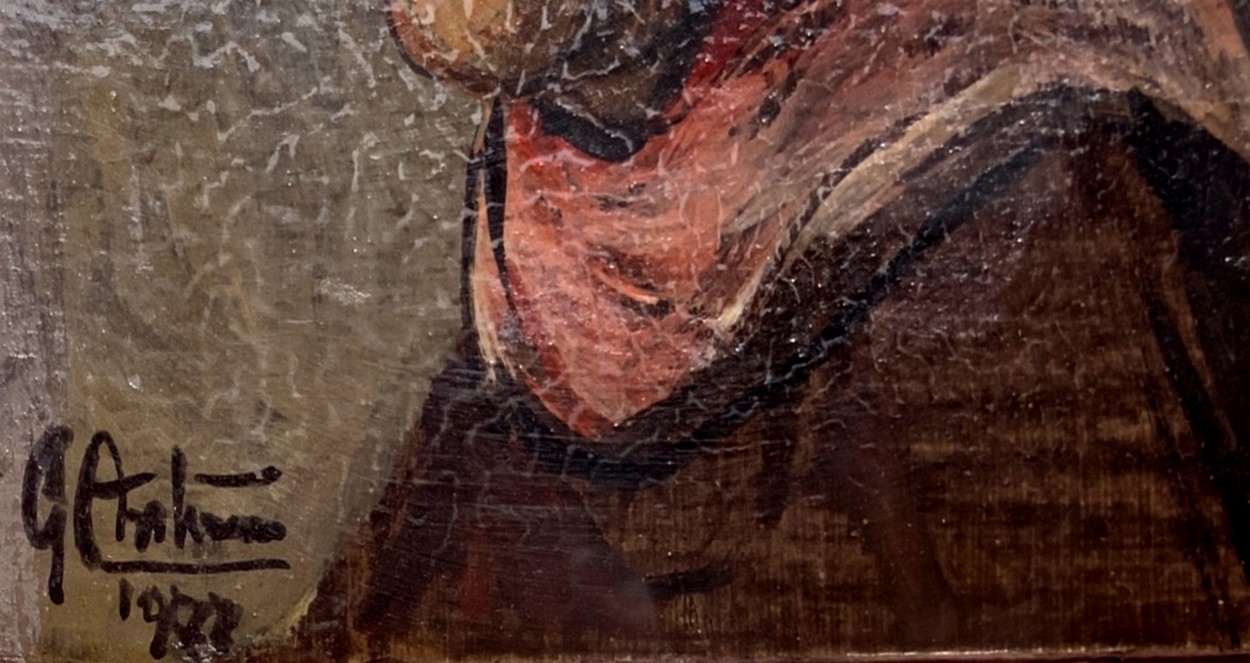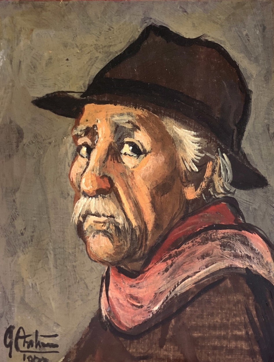 Gianfranco Antoni (Firenze 1925-Firenze 1994) - Viso di uomo con cappello. , 1978 20x15 cm, in cornice 35x30 Dipinto ad olio su tavoletta Firmato in basso a sinistra Gianfranco Antoni e datato 1978