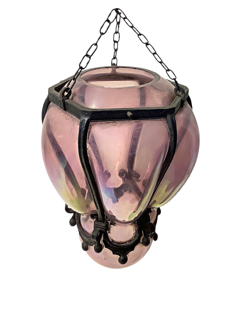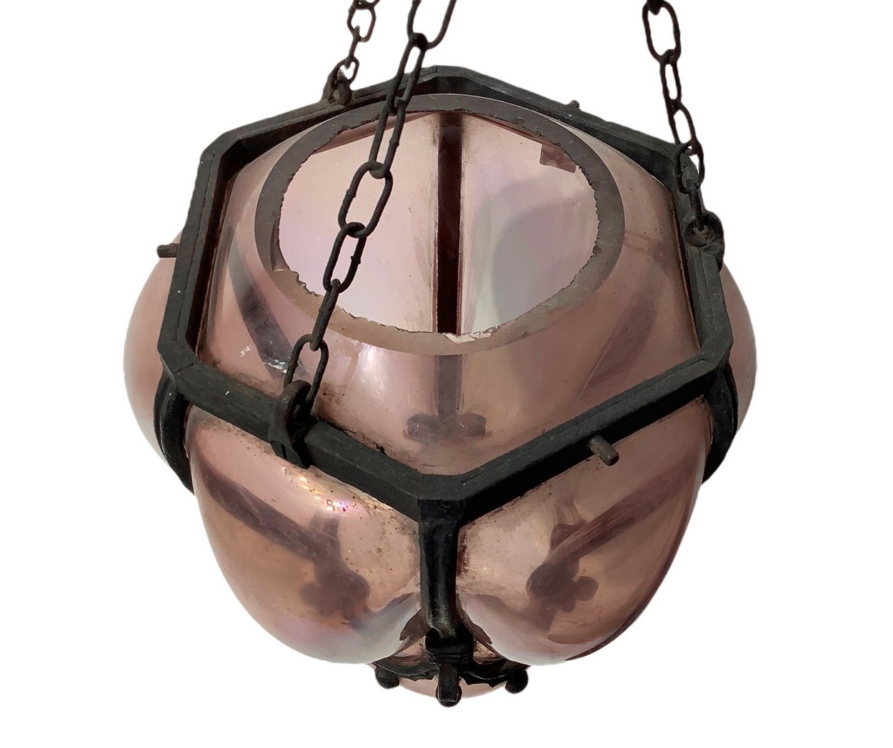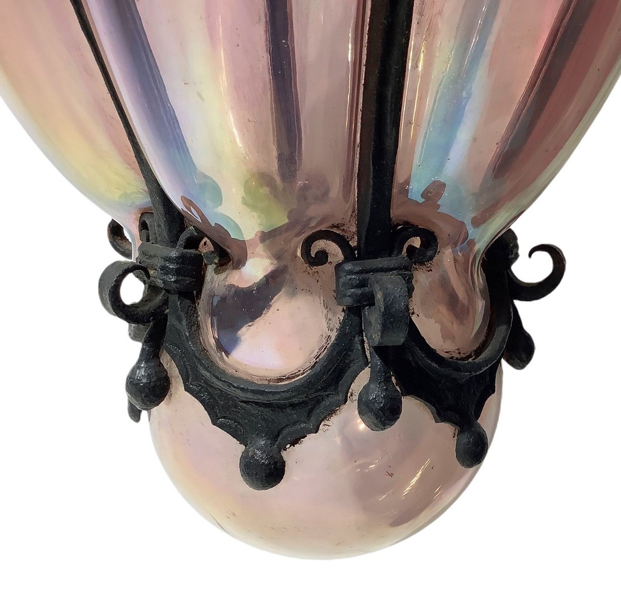 Lampadario in vetro di Murano, 20th century Con struttura in metallo e vetro iridescente nei toni del viola. Venezia.Con struttura in metallo e vetro iridescente nei toni del viola. Venezia.