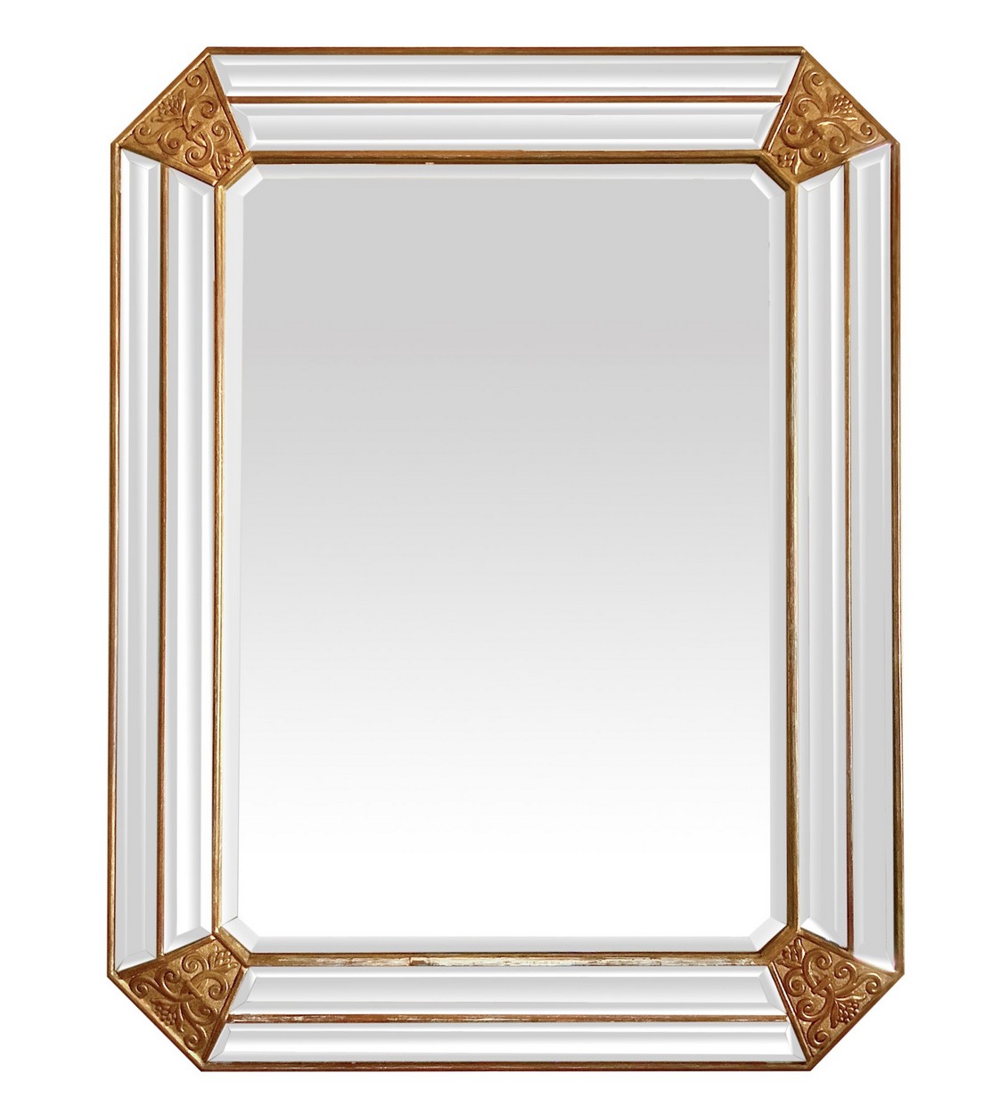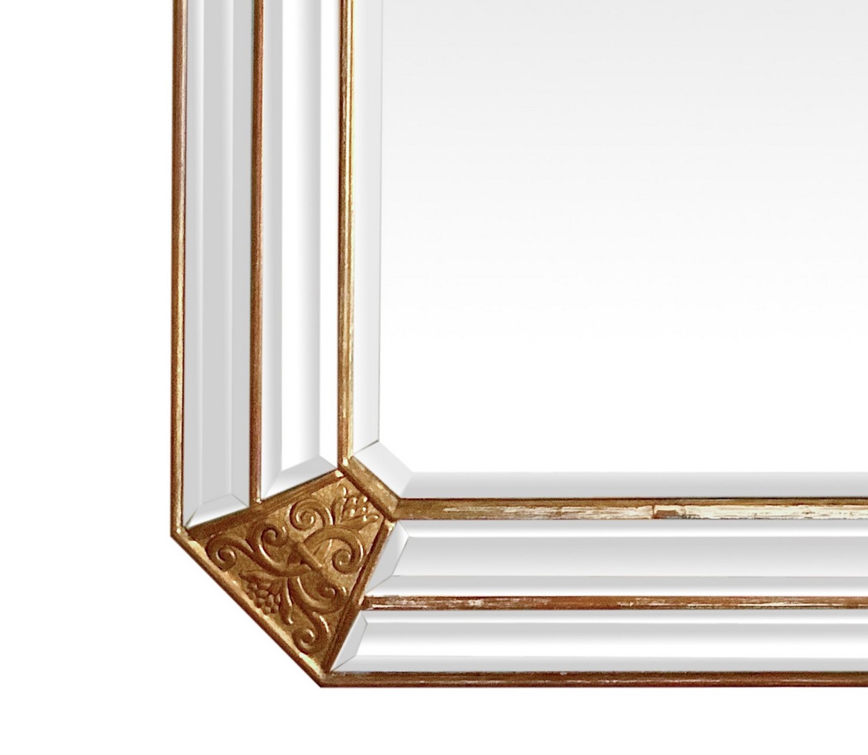 Specchiera rettangolare, 80s Cm 100x80 A vetri molati e riporti dorati ai 4 angoli smussati.A vetri molati e riporti dorati ai 4 angoli smussati.