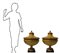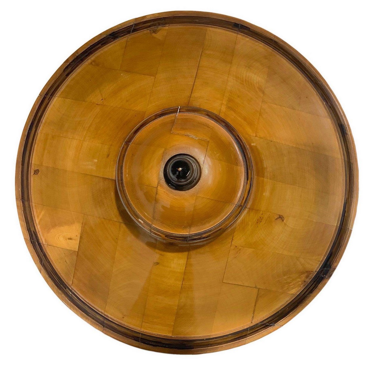 Coppia di potiche Biedermeier H con coperchio 62x50 cm In legni chiari con dettagli, pomo e base ebanizzati