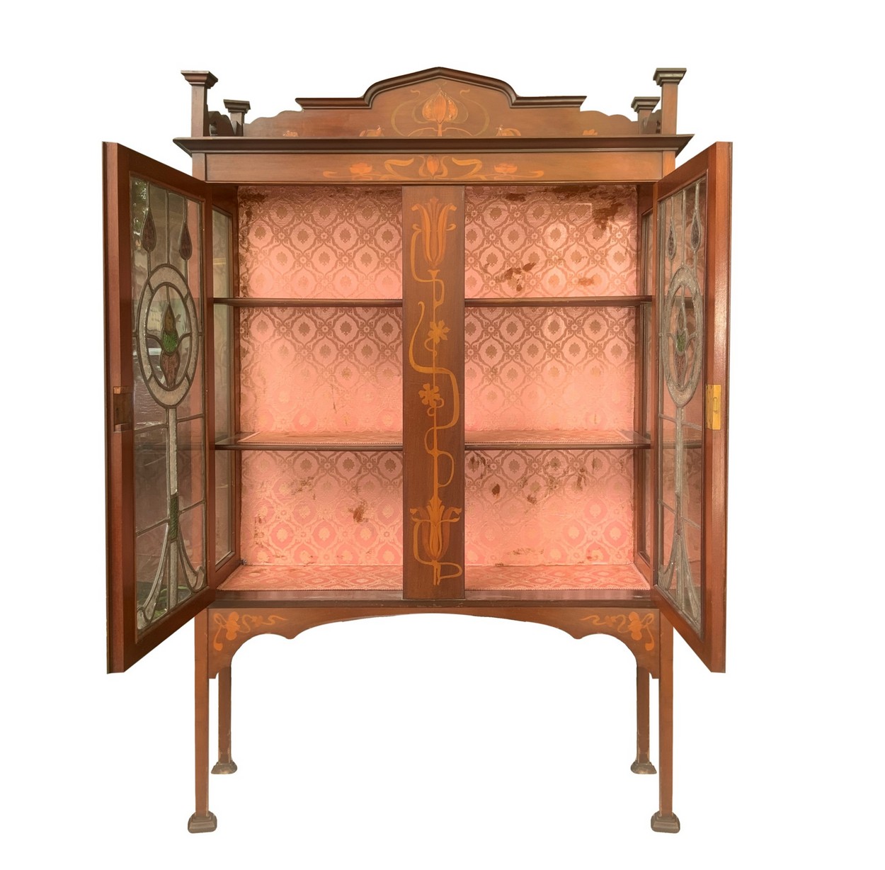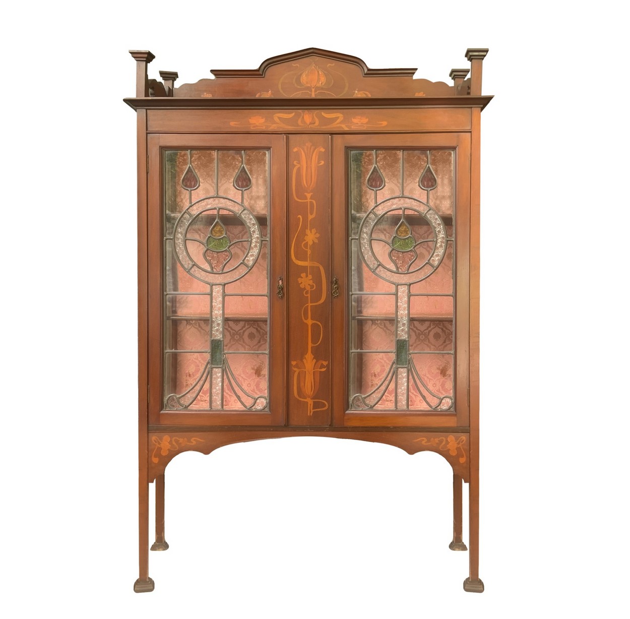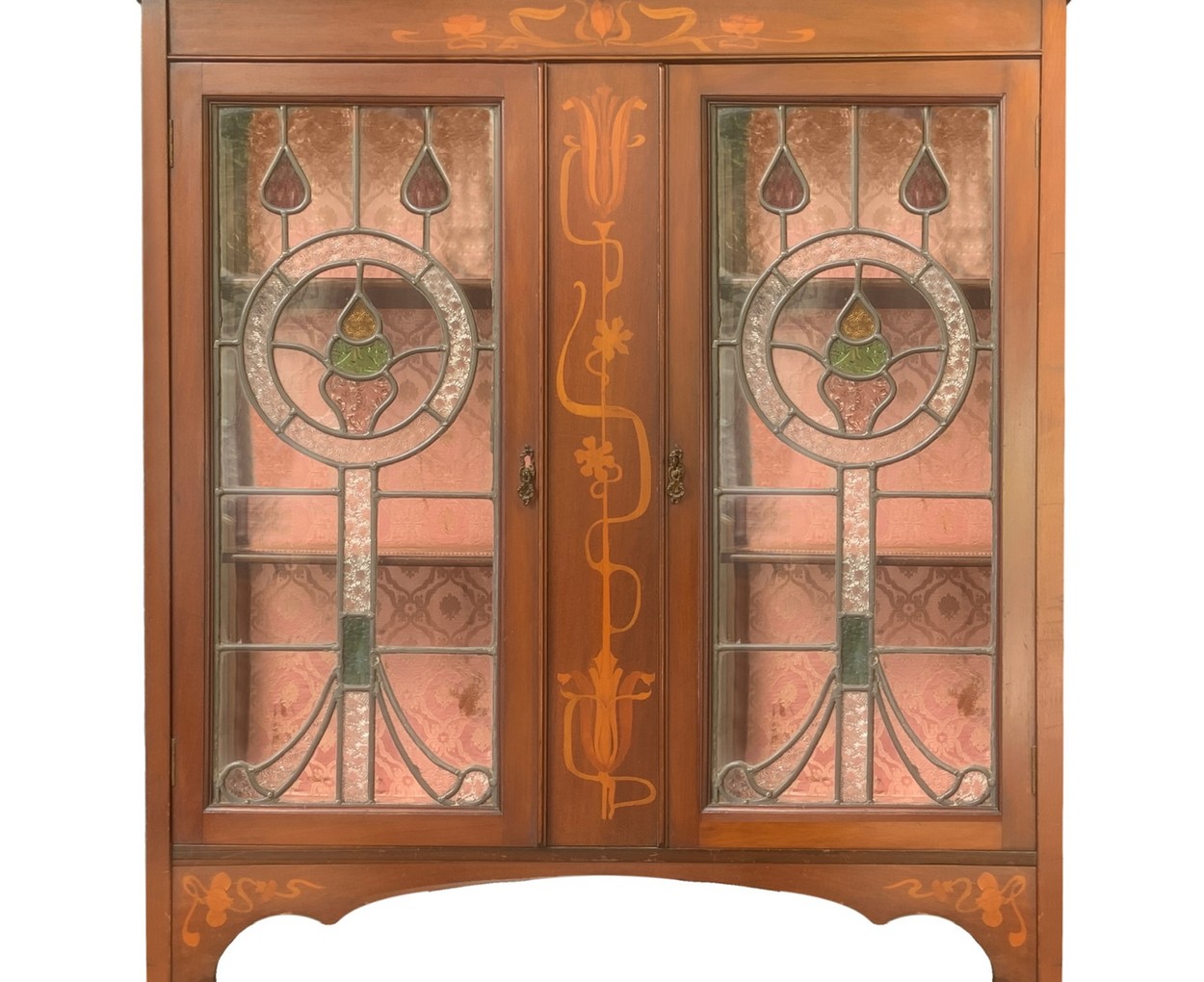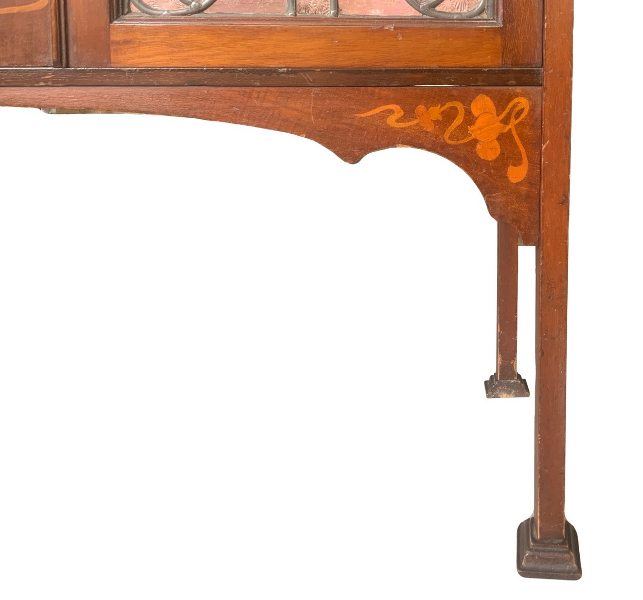 Mobile vetrina bassa Liberty , Early 20th century H 168x100x35 cm con ante in vetro piombato policromo.con ante in vetro piombato policromo.