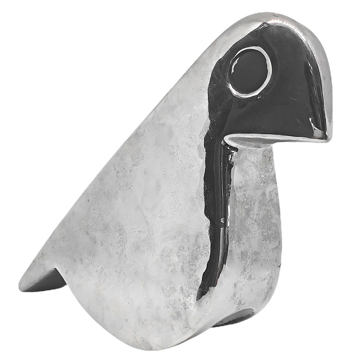 N. 5 oggetti in ceramica argentata nello stile di Bitossi raffiguranti animali stilizzati, uccello e coniglio, un vaso di forma rettangolare, una caraffa, una tazza con piattino e sottopiatto.
