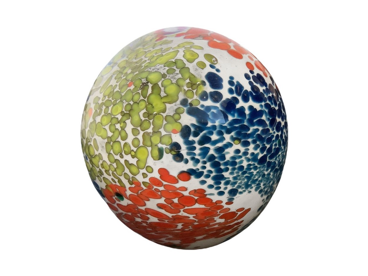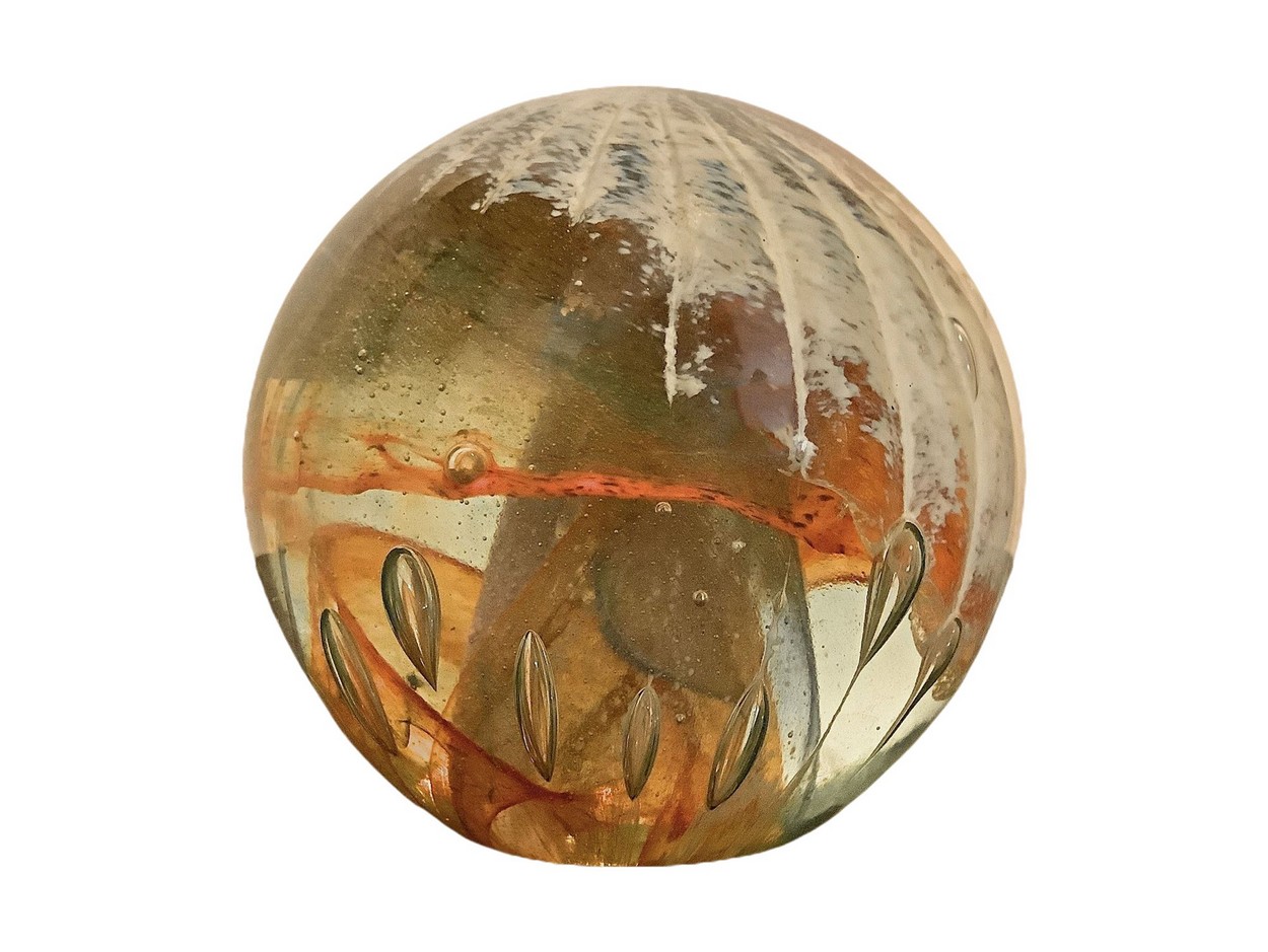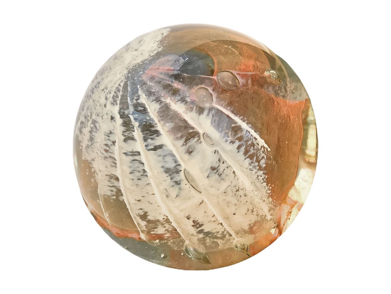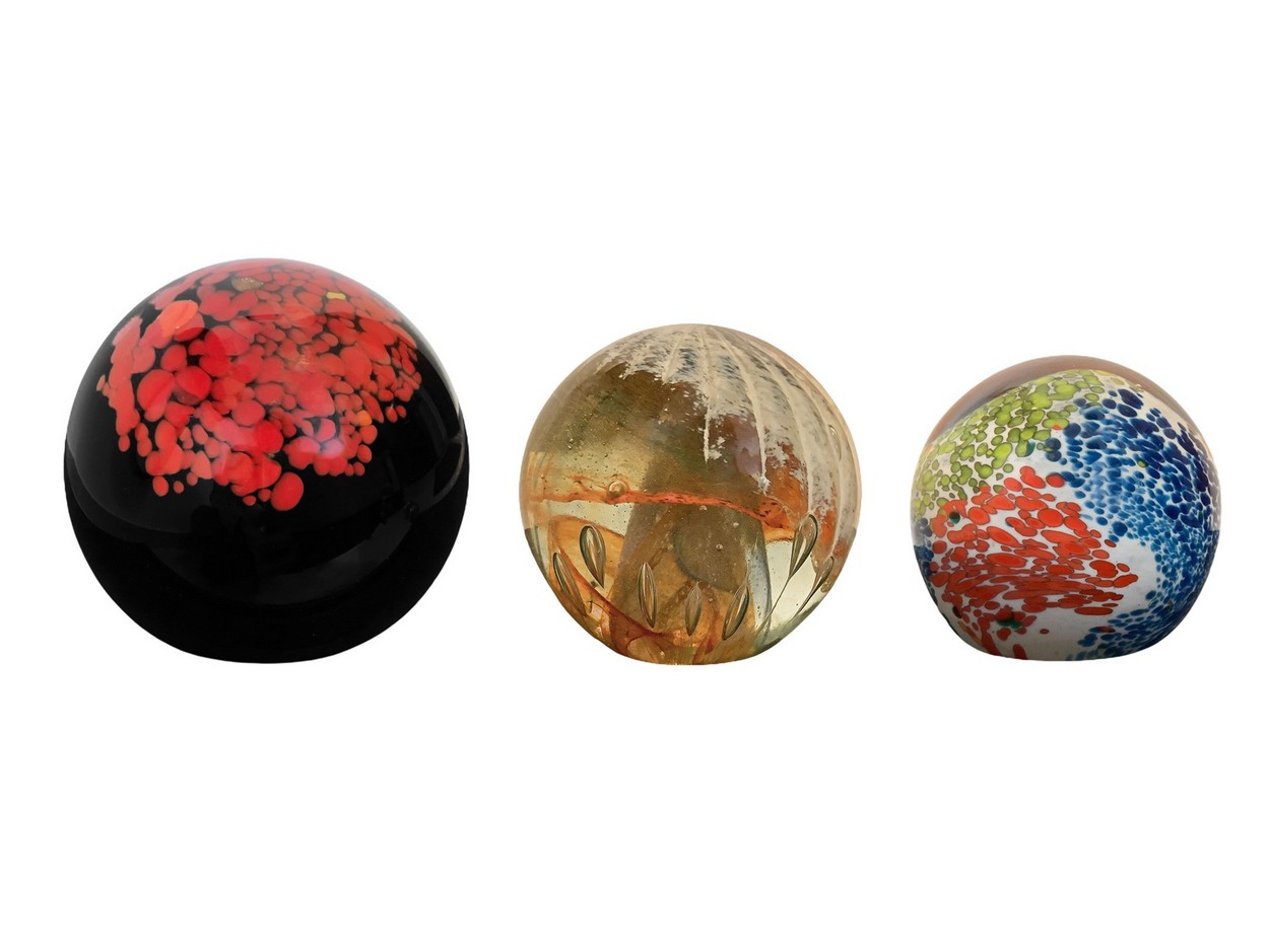 Nason Murano - Gruppo di tre ferma carte in vetro di forma sferica, 70's 8 cm, 7 cm, 6 cm riportanti inclusioni di Murine policrome a motivo astratto. riportanti inclusioni di Murine policrome a motivo astratto.