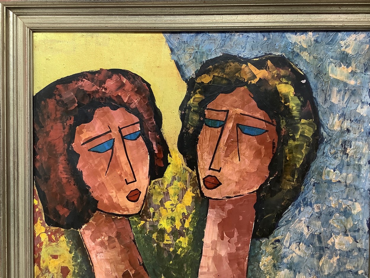 Rosalia Ribaudo (XX secolo) - Due donne "Lesbiches", 1977 80x60 cm Dipinto ad olio su tela Firmato Rosalia Ribaudo 1977 Questo lotto è soggetto a diritto di seguito