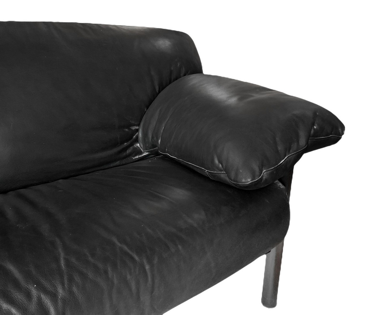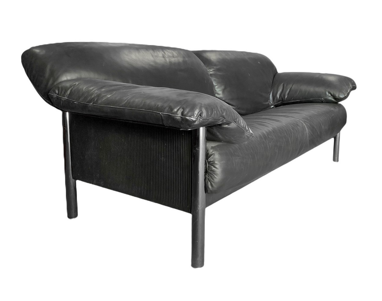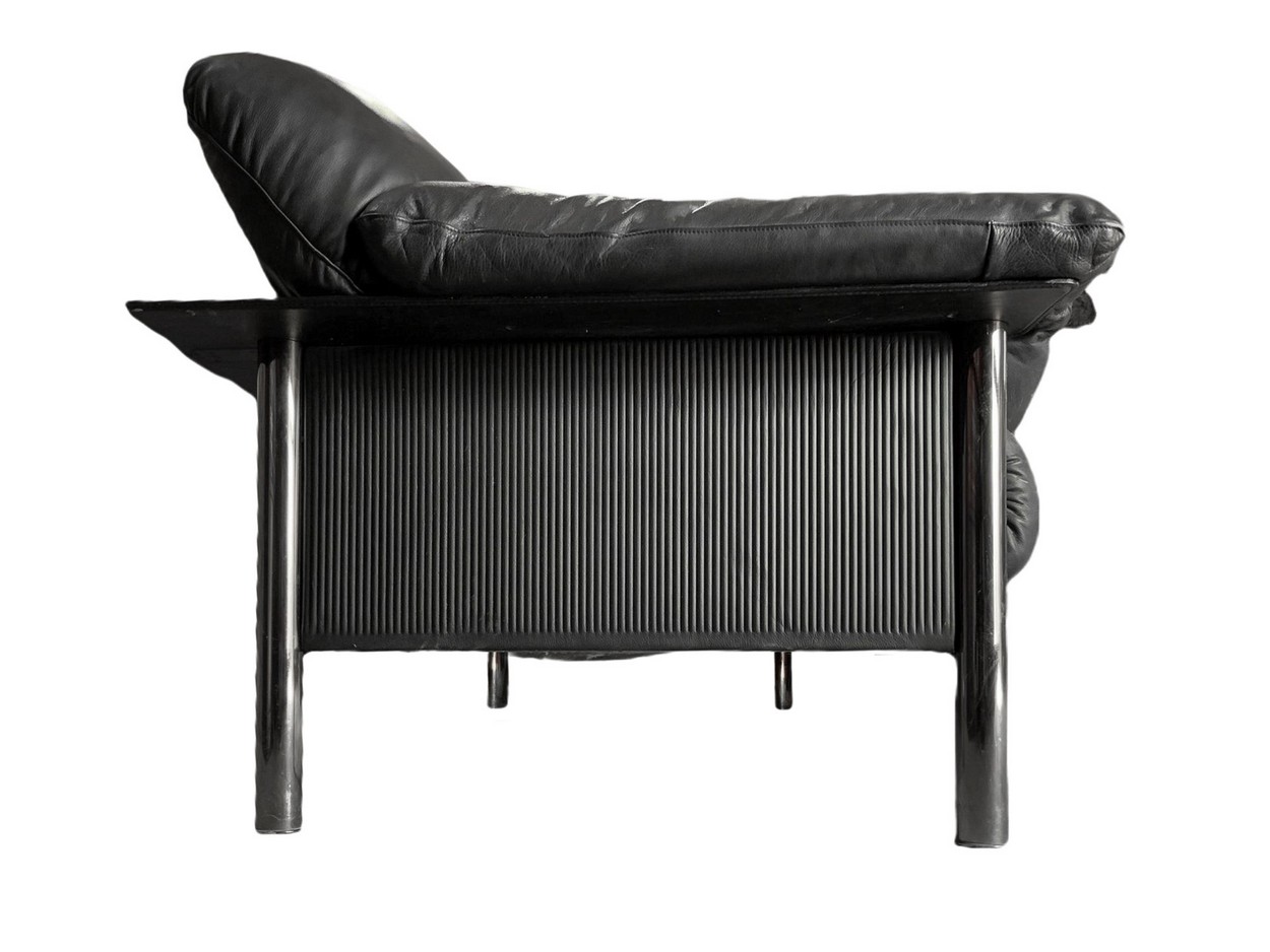 Pierluigi Cerri per Poltrona Frau - Divano modello Pausa disegno Pierluigi Cerri, 90's H cm 90. Lunghezza cm 200, profondità cm 75 Struttura in metallo cromato e seduta in pelle nera. Logo della manifattura impresso.Struttura in metallo cromato e seduta in pelle nera. Logo della manifattura impresso.