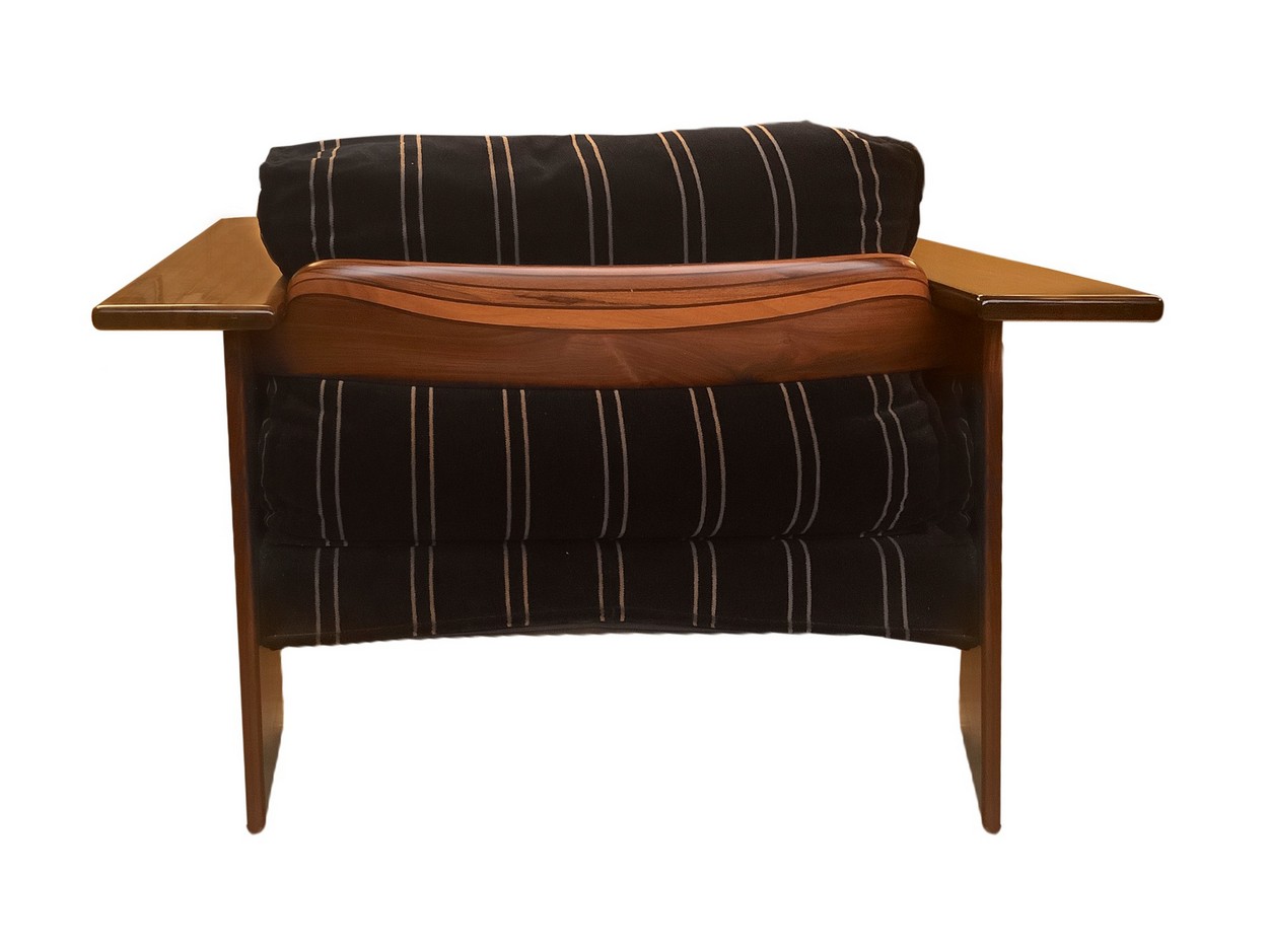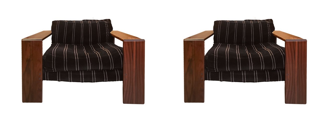 Afra Tobia Scarpa per Maxalto - Coppia di poltrone modello linea Artona l 105 cm, p 85 cm Velluto di mohair. Struttura in legno stratificato multistrato in essenza di noce ed ebano. Schienale in multistrato curvato.Velluto di mohair. Struttura in legno stratificato multistrato in essenza di noce ed ebano. Schienale in multistrato curvato.