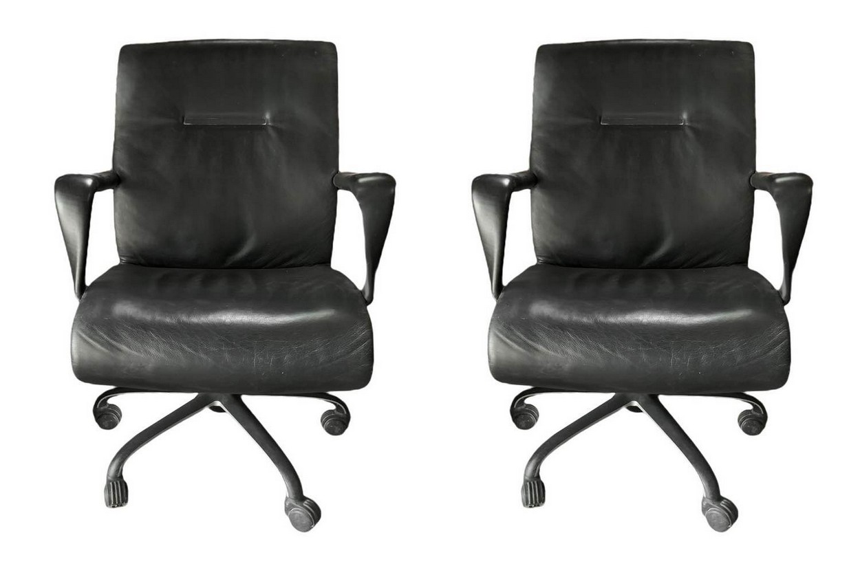 Design Centre per Poltrona Frau - Coppia poltrone modello Forum, 90's H cm 95, cm 64x68 Struttura del piede in alluminio a cinque razze, rivestimento in pelle color nero.Struttura del piede in alluminio a cinque razze, rivestimento in pelle color nero.