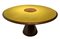 Importante tavolo con struttura in legno impiallacciata noce e finitura lucida, 70's D 135 cm, h 70 cm Produzione italiana nello stile di Angelo Mangiarotti. Piede tronco conico e piano rotondo rivestito in panno nei toni del senape. Segni di uso. Produzione italiana nello stile di Angelo Mangiarotti. Piede tronco conico e piano rotondo rivestito in panno nei toni del senape. Segni di uso.
