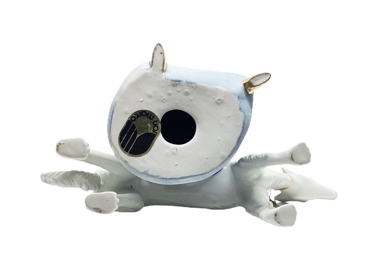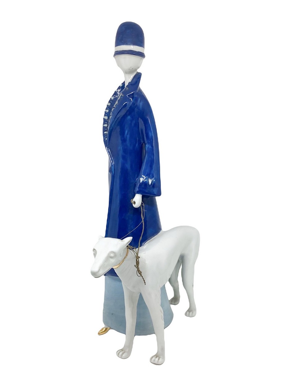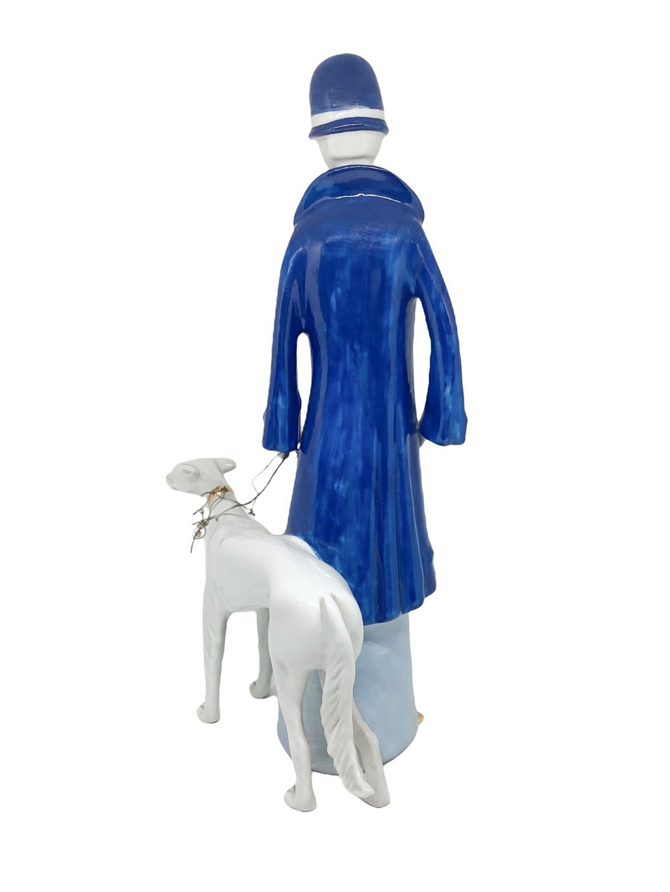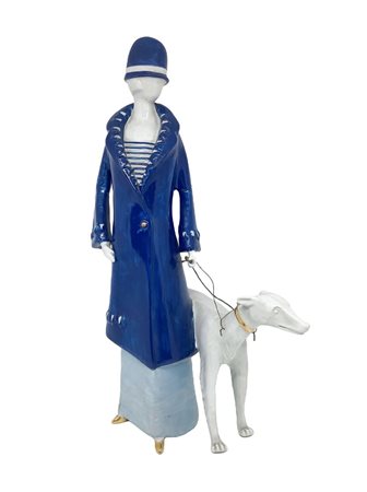 San Marco Porcellane (1890) - Donna con cappotto blu e cane al guinzaglio. H cm 34 Questo lotto è soggetto a diritto di seguito