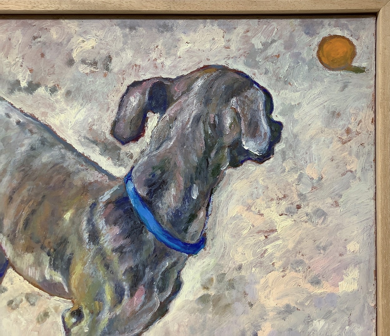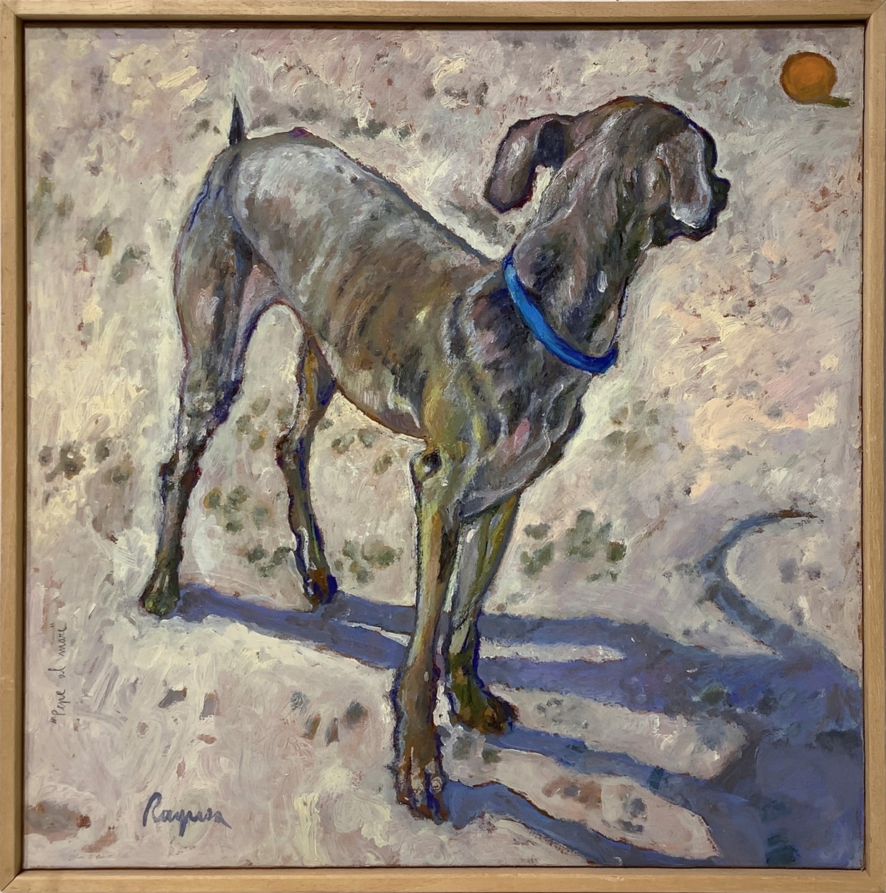 "Pepe al mare", cane in spiaggia a Fontane Bianche, Siracusa 50x50 cm Olio su tela