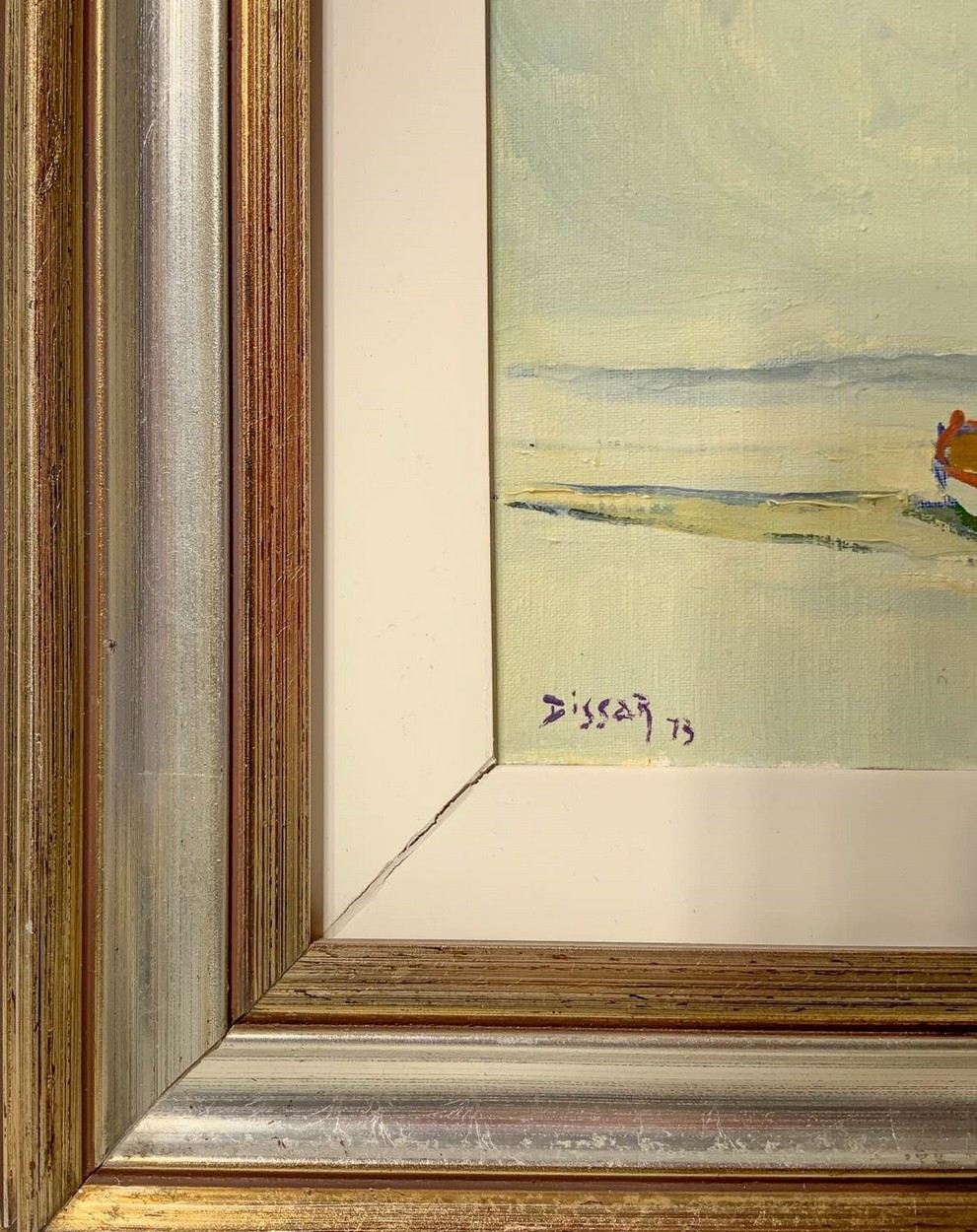 Max Dissar (Nizza 1908-Juan-les-Pins 1993) - Paesaggio "Provence", spiaggia con barche, 1973 19x29 cm, in cornice 39x48 cm Dipinto ad olio su tela Firmato in basso a sinistra e sul retro