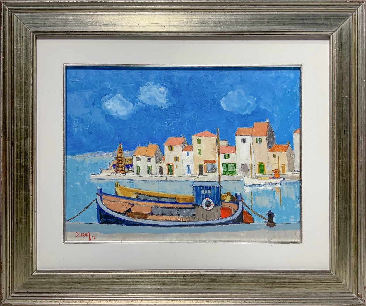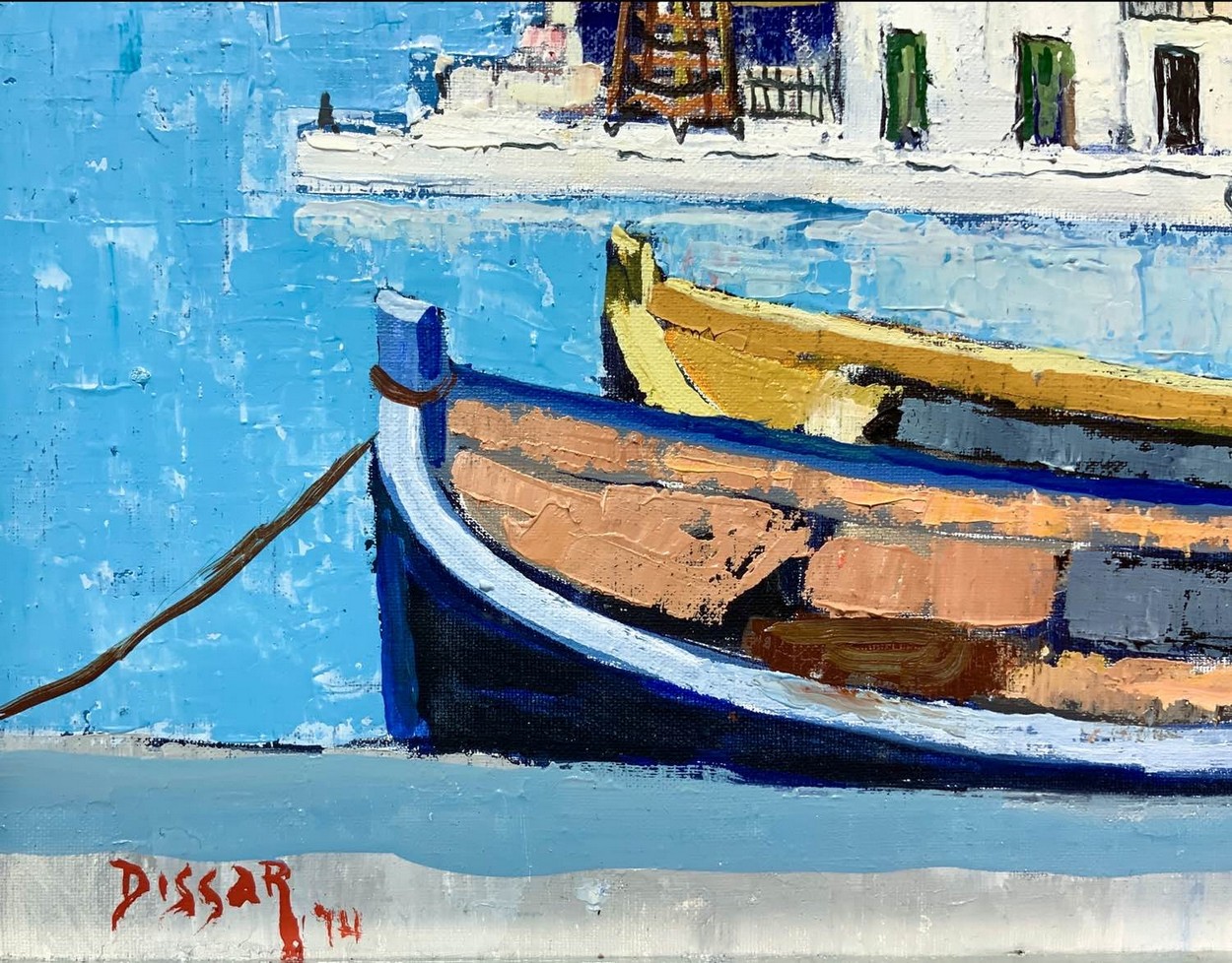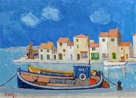Max Dissar (Nizza 1908-Juan-les-Pins 1993) - Paesaggio marino con case Cm 30x40, in cornice cm 50x60 Dipinto ad olio su tela Firmato fronte e retro