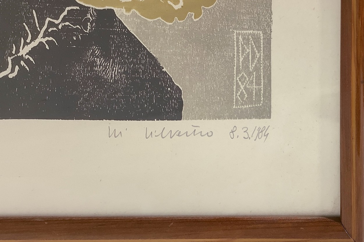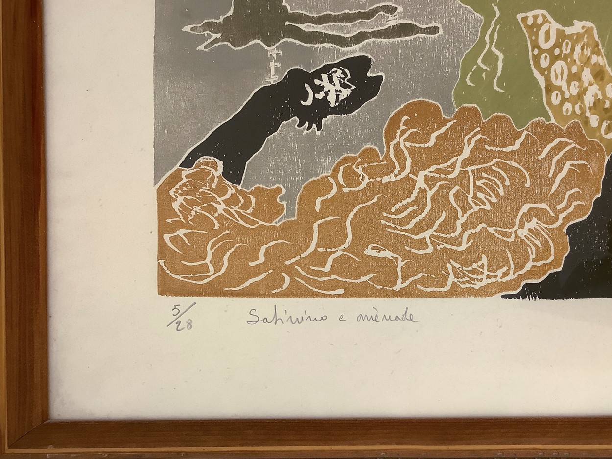 Satirino e Menade, 05/03/1984 Serigrafia Raffigurazione di piccolo satiro e baccante. Firmato Di Silvestro.