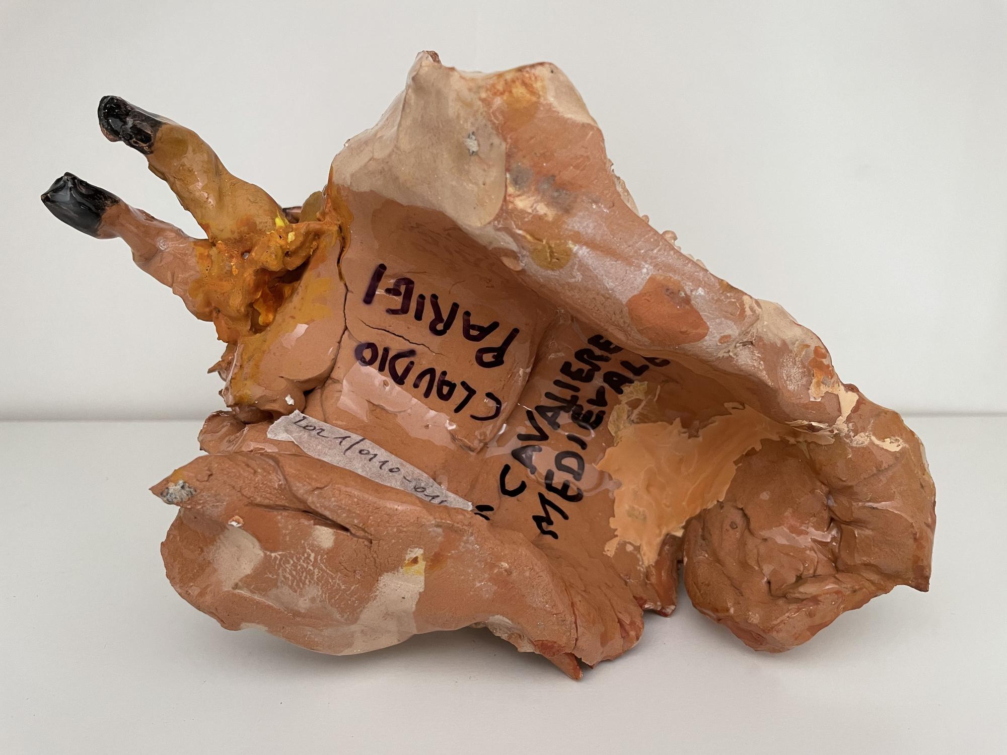 Claudio Parigi CAVALIERE MEDIOEVALE terracotta invetriata con inclusioni di...