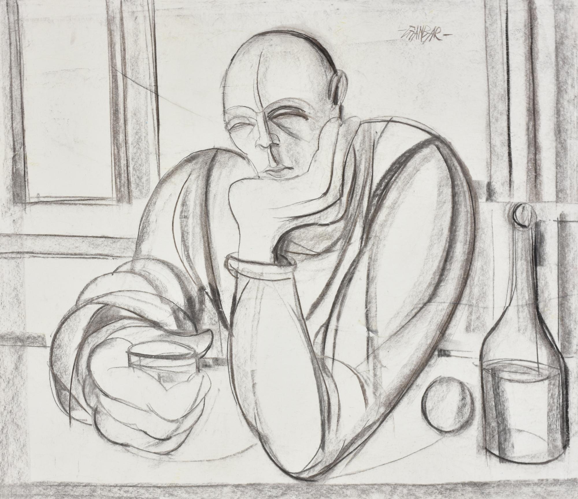GIANBAR (Gianni Baretta) IL BEVITORE carboncino su cartoncino, cm 49x56 firma...
