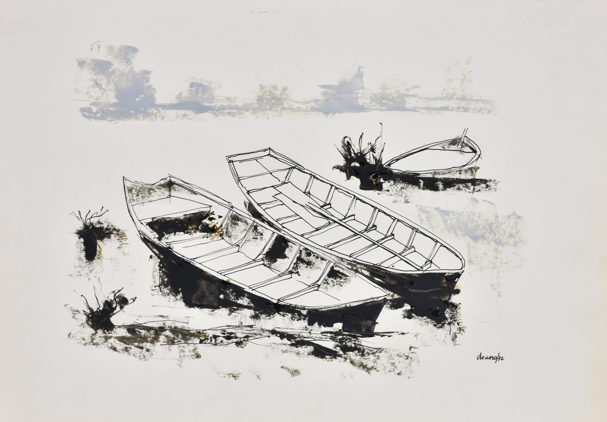 De Naro BARCHE SUL FIUME inchiostro e tempera su carta, cm 35x50 firma e data...