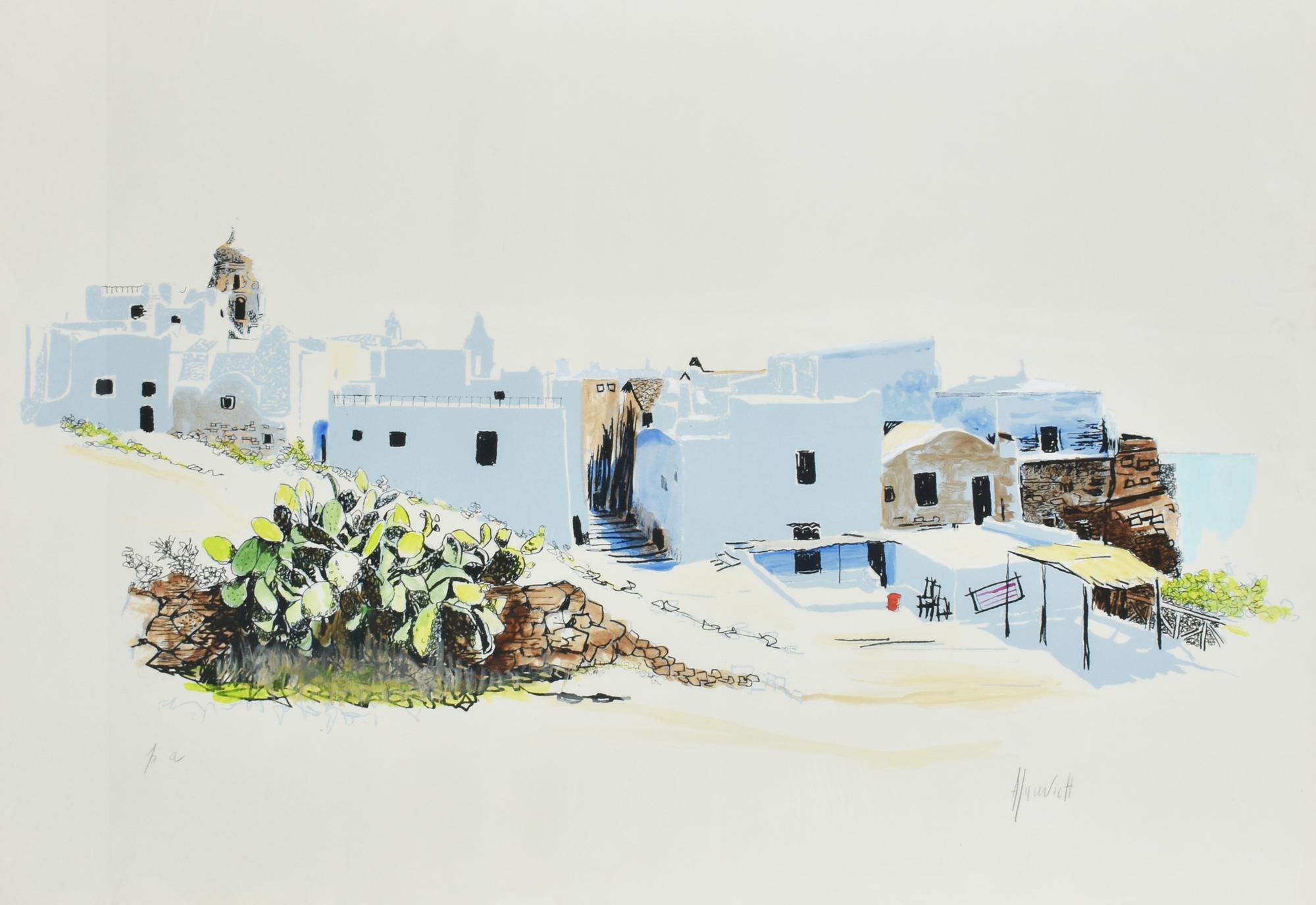 Alyuvich LA CITTA' BIANCA litografia su carta, cm 70x100; es. prova d'autore...