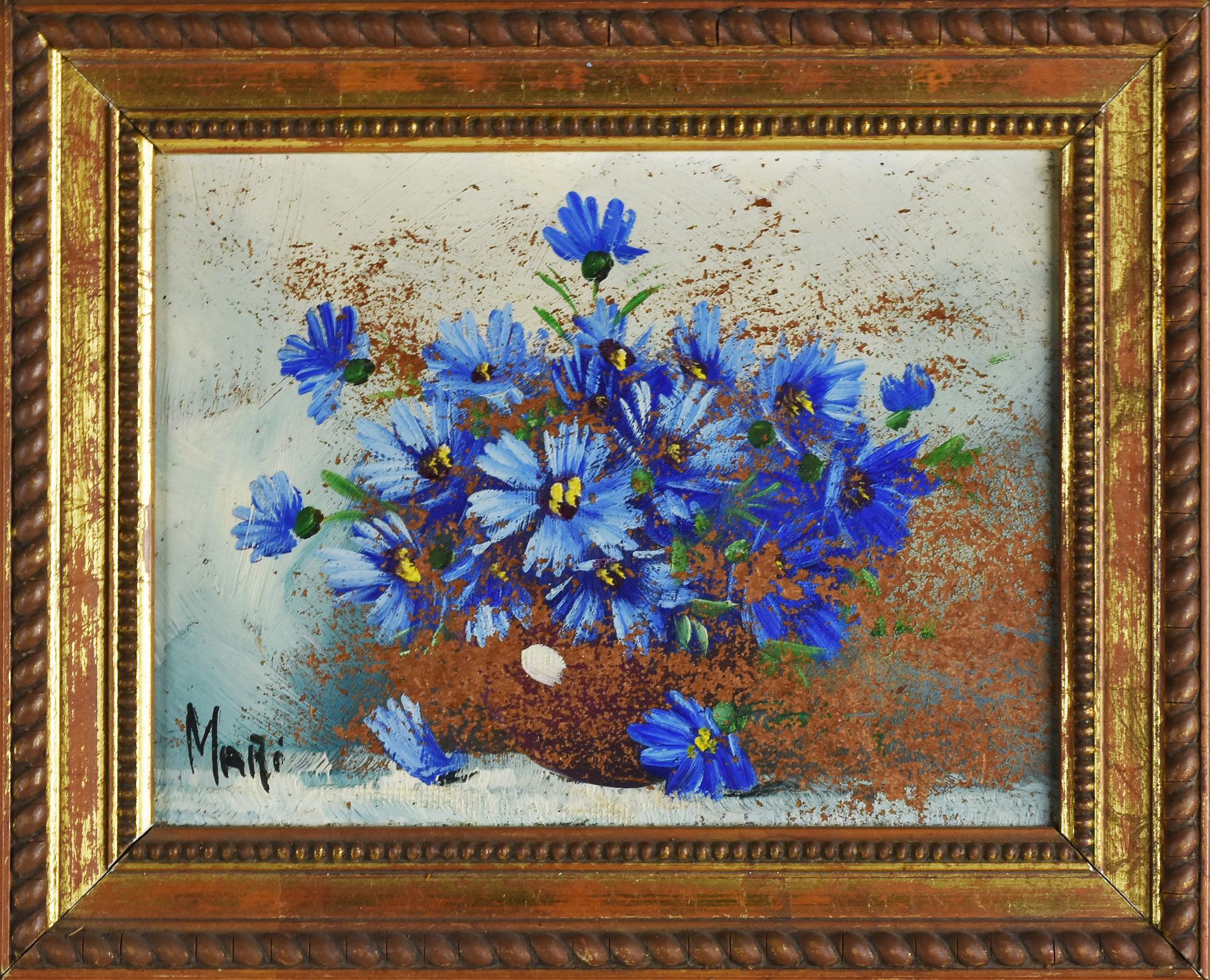 Mari FIORI BLU olio su masonite, cm 18x24 firma