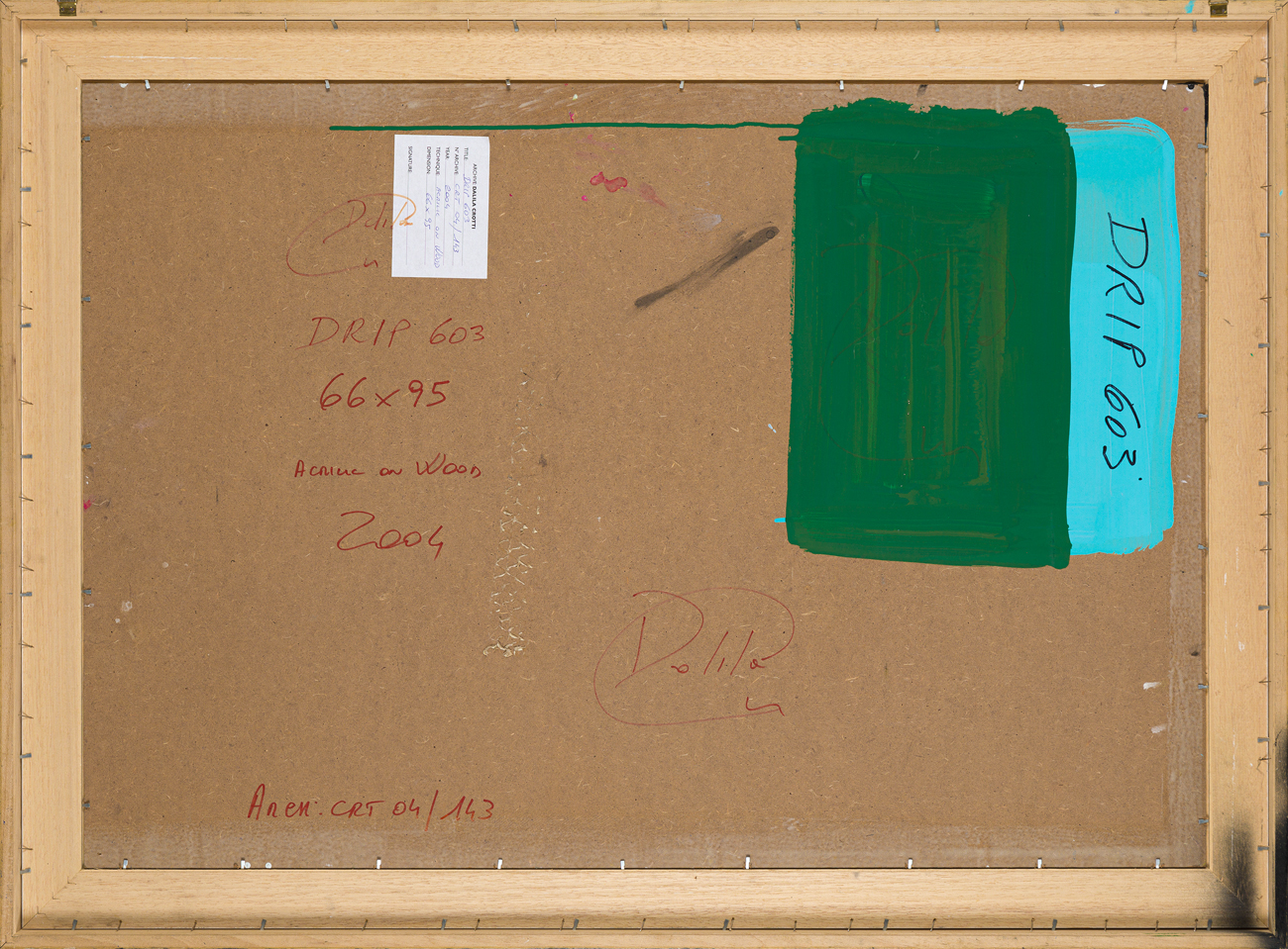 Firma, titolo, datazione, misure e numero di archivio al retro