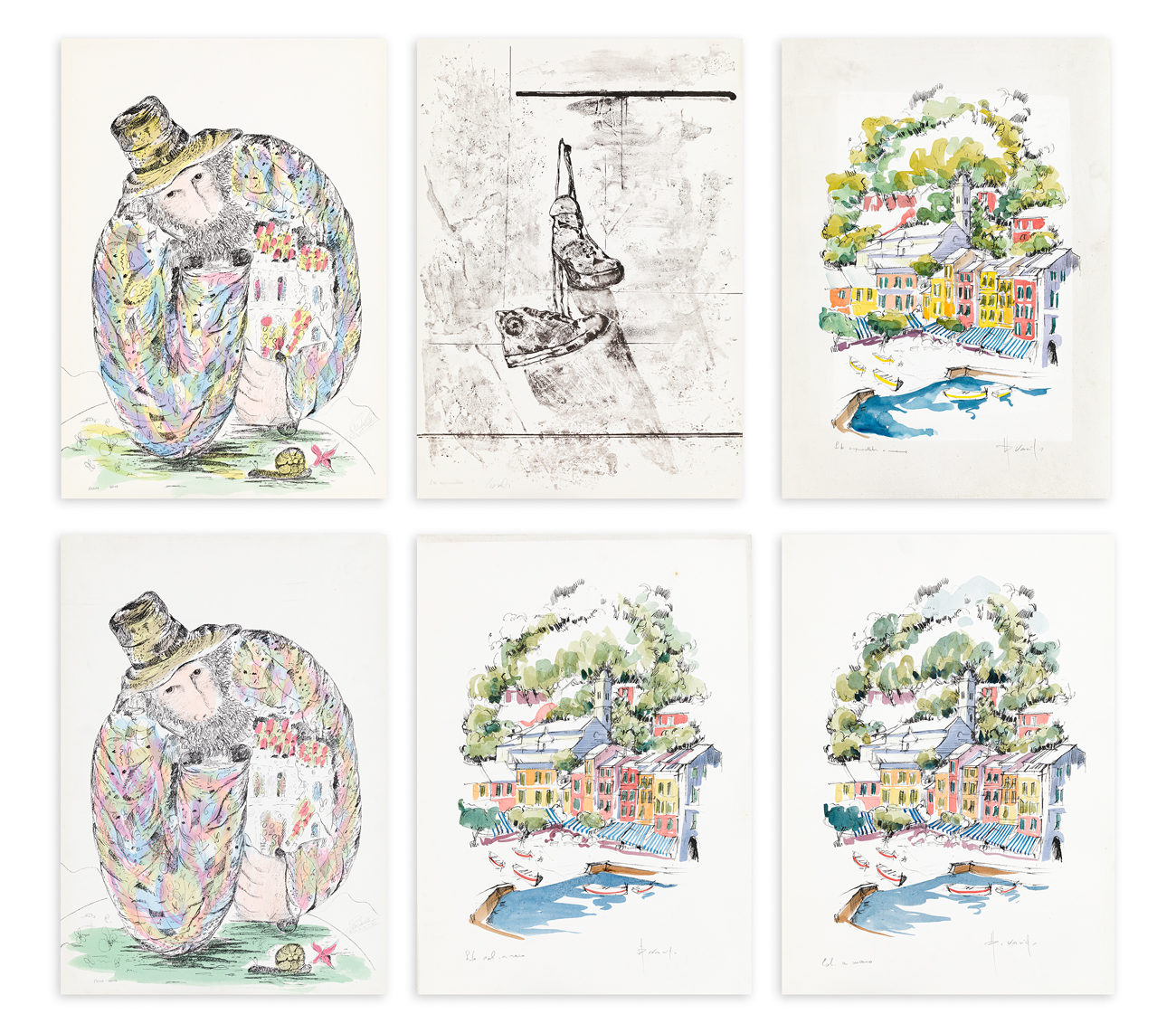 Firma e numerazione (Esemplare Lito Acquarellata) a matita al fronte