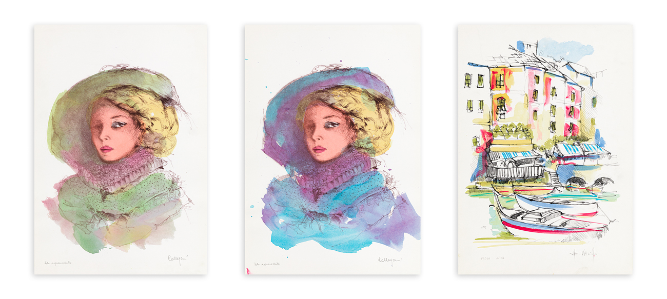 Firma e numerazione (Esemplare Lito Acquarellata) a matita al fronte